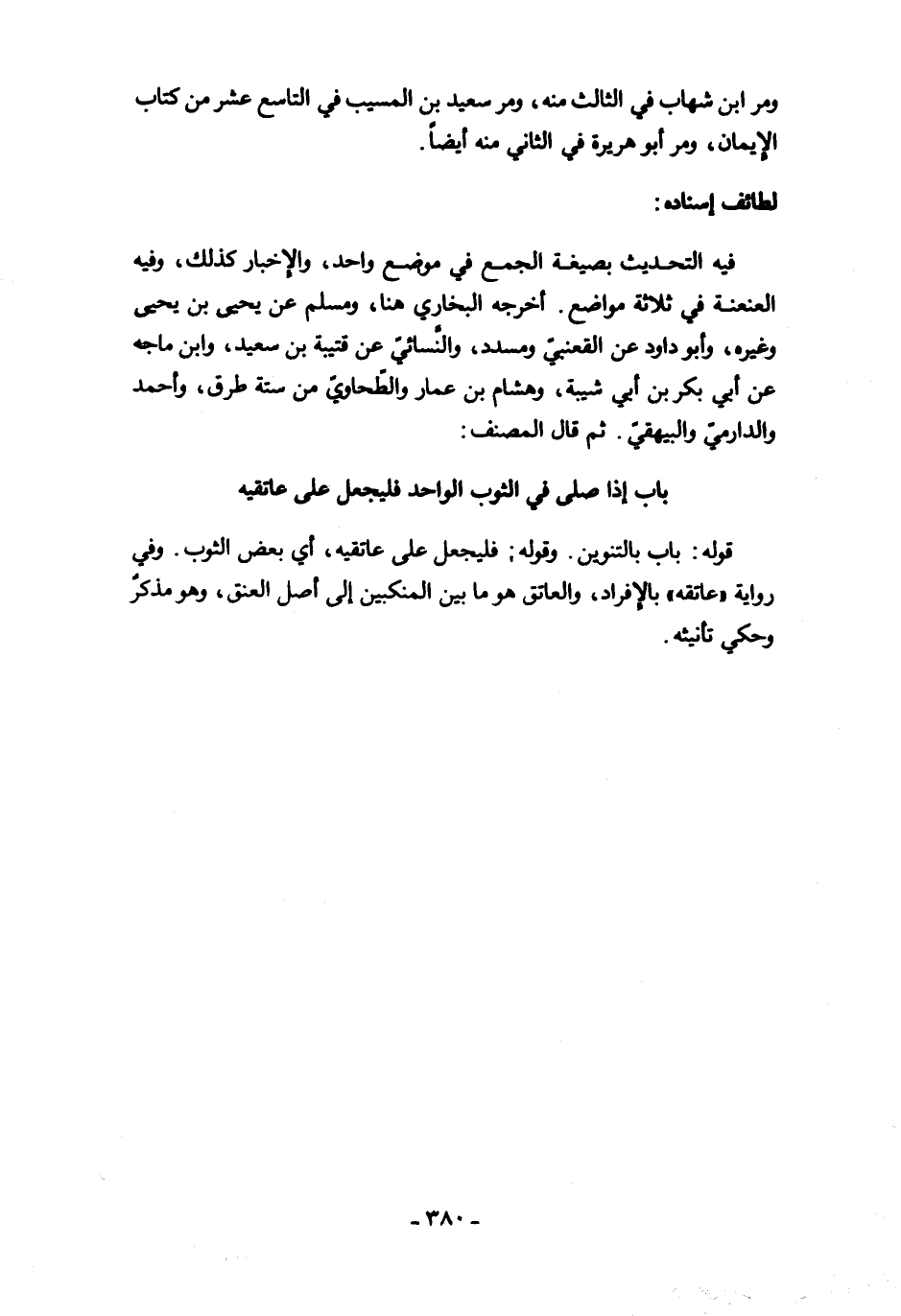 باب إذا صلى في الثوب الواحد فليجعل على عاتقيه