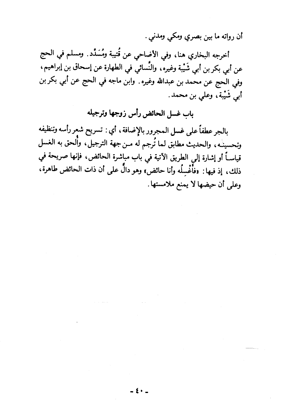 أخرجه البخاري هنا، وفي الأضاحي عن قُتيبة ومُسَدَّد. ومسلم في الحج عن أبي بكر بن أبي شَيْبة وغيره، والنَّسائي في الطهارة عن إسحاق بن إبراهيم، وفي الحج عن محمد بن عبد الله وغيره. وابن ماجه في الحج عن أبي بكر بن أبي شَيْبة، وعلي بن محمد.