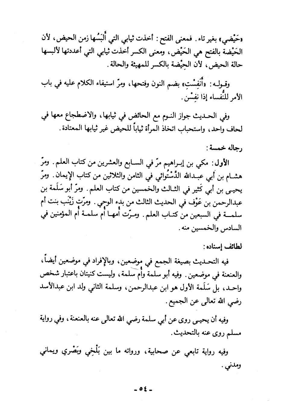 الأول: مكي بن إبراهيم مرَّ في السابع والعشرين من كتاب العلم. ومرَّ هشام بن أبي عبد الله الدَّسْتُوائي في الثامن والثلاثين من كتاب الإيمان. ومرَّ يحيى بن أبي كَثير في الثالث والخمسين من كتاب العلم. ومرَّ أبو سَلَمة بن عبد الرحمن بن عَوْف في الحديث الثالث من بدء الوحي. ومرّت زَيْنَب بنت أم سلمة في السبعين من كتاب العلم. ومرّت أمها أم سلمة أم المؤمنين في السادس والخمسين منه.