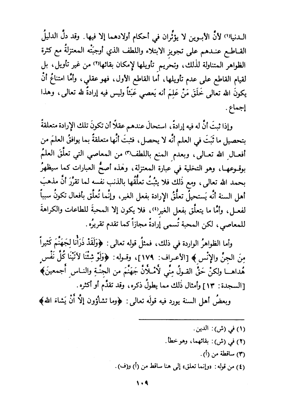 وبعض أهل السنة يورد فيه قوله تعالى: {وما تشاؤُون إلاَّ أنْ يَشاءَ الله}
