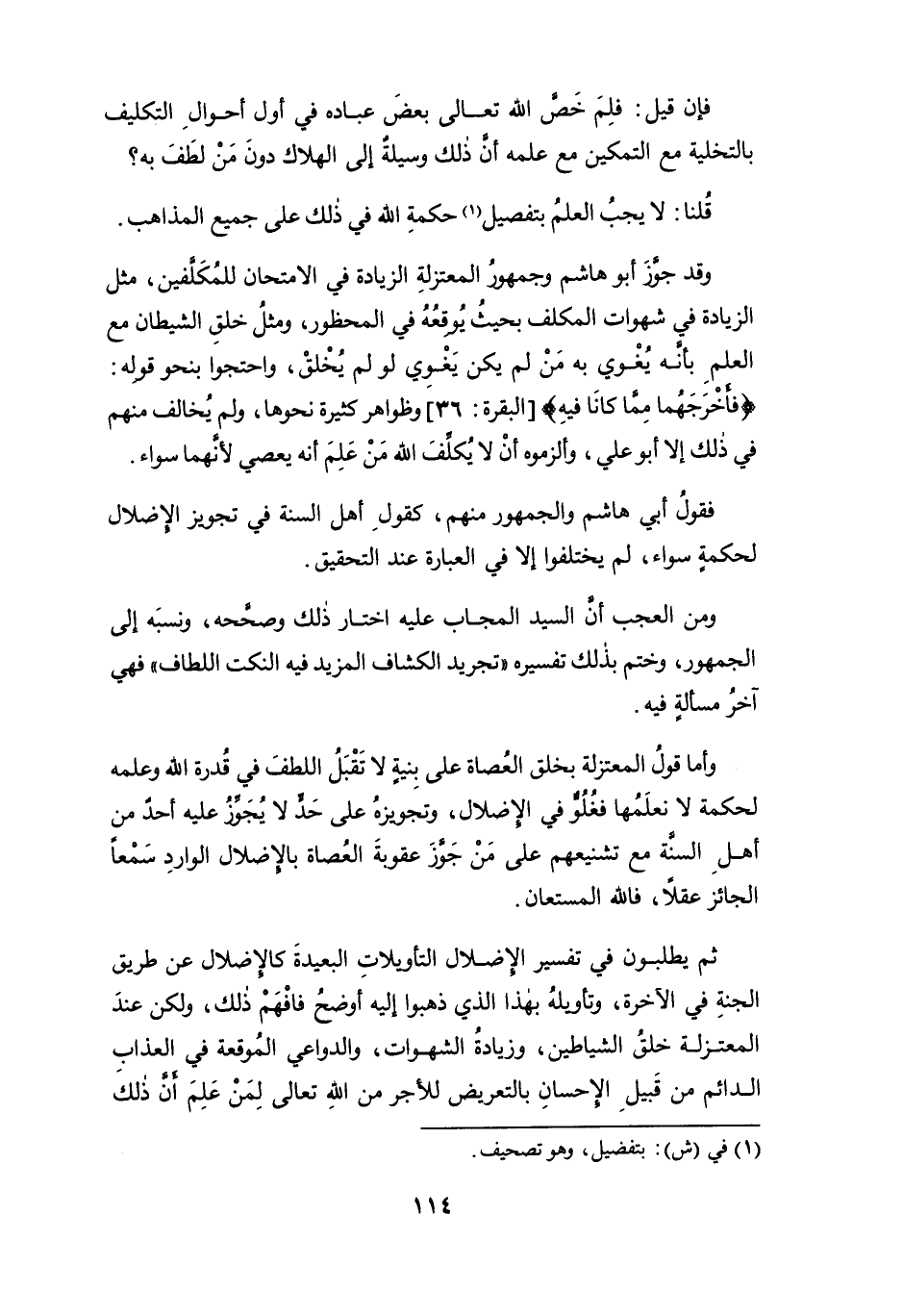 وأما قول المعتزلة بخلق العُصاة على بِنيةٍ لا تقبل اللطف في قدرة الله وعلمه لحكمة لا نعلمها فغُلُوٌّ في الإضلال، وتجويزه على حدٍّ لا يُجَوِّزُ عليه أحد من أهل السنة مع تشنيعهم على من جوَّز عقوبة العصاة بالإضلال الواردِ سمعاً الجائز عقلاً، فالله المستعان.