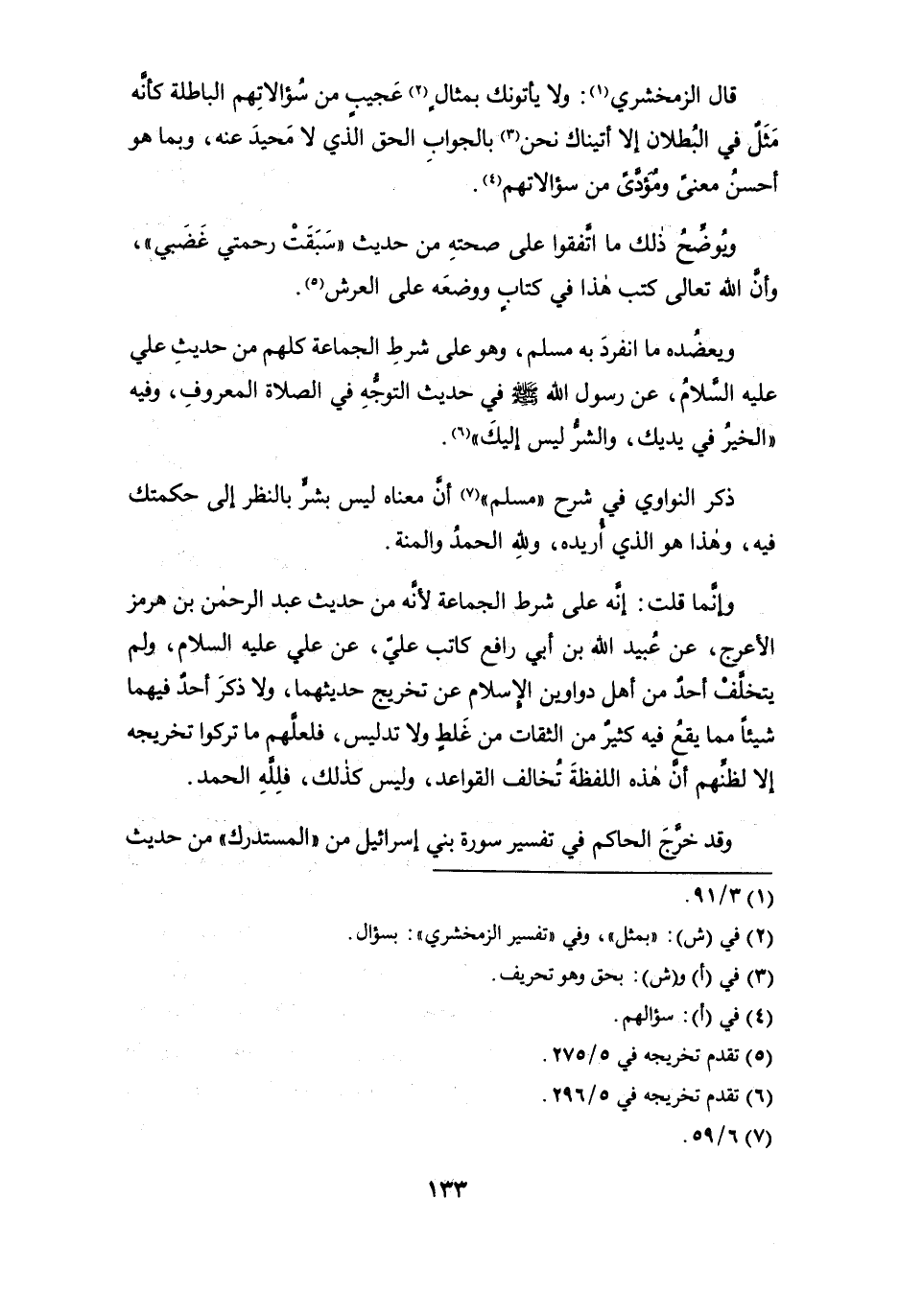 وإنما قلت: إنه على شرط الجماعة لأنه من حديث عبد الرحمن بن هرمز الأعرج، عن عبيد الله بن أبي رافع كاتب علي، عن علي عليه السلام، ولم يتخلف أحدٌ من أهل دواوين الإسلام عن تخريج حديثهما، ولا ذكر أحدٌ فيهما شيئاً مما يقع فيه كثيرٌ من الثقات من غلطٍ ولا تدليس، فلعلهم ما تركوا تخريجه إلا لظنِّهم أن هذه اللفظة تخالف القواعد، وليس كذلك، فلله الحمد.