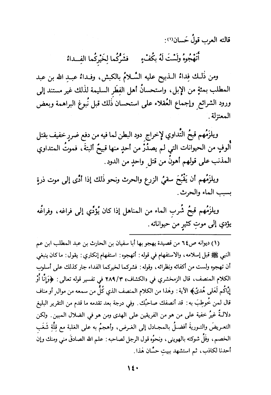 ومن ذلك فداء الذبيح عليه السلام بالكبش، وفداء عبد الله بن عبد المطلب بمئةٍ من الإبل، واستحسانُ أهل الفطر السليمة لذلك غير مستند إلى ورود الشرائع وإجماع العقلاء على استحسان ذلك قبل نُبوغ البراهمة وبعض المعتزلة.
