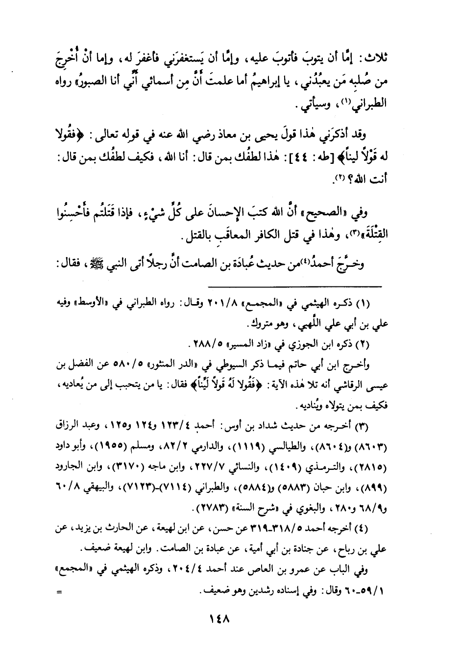 (¬4) أخرجه أحمد 5/ 318 - 319 عن حسن، عن ابن لهيعة، عن الحارث بن يزيد، عن علي بن رباح، عن جنادة بن أبي أمية، عن عبادة بن الصامت. وابن لهيعة ضعيف.