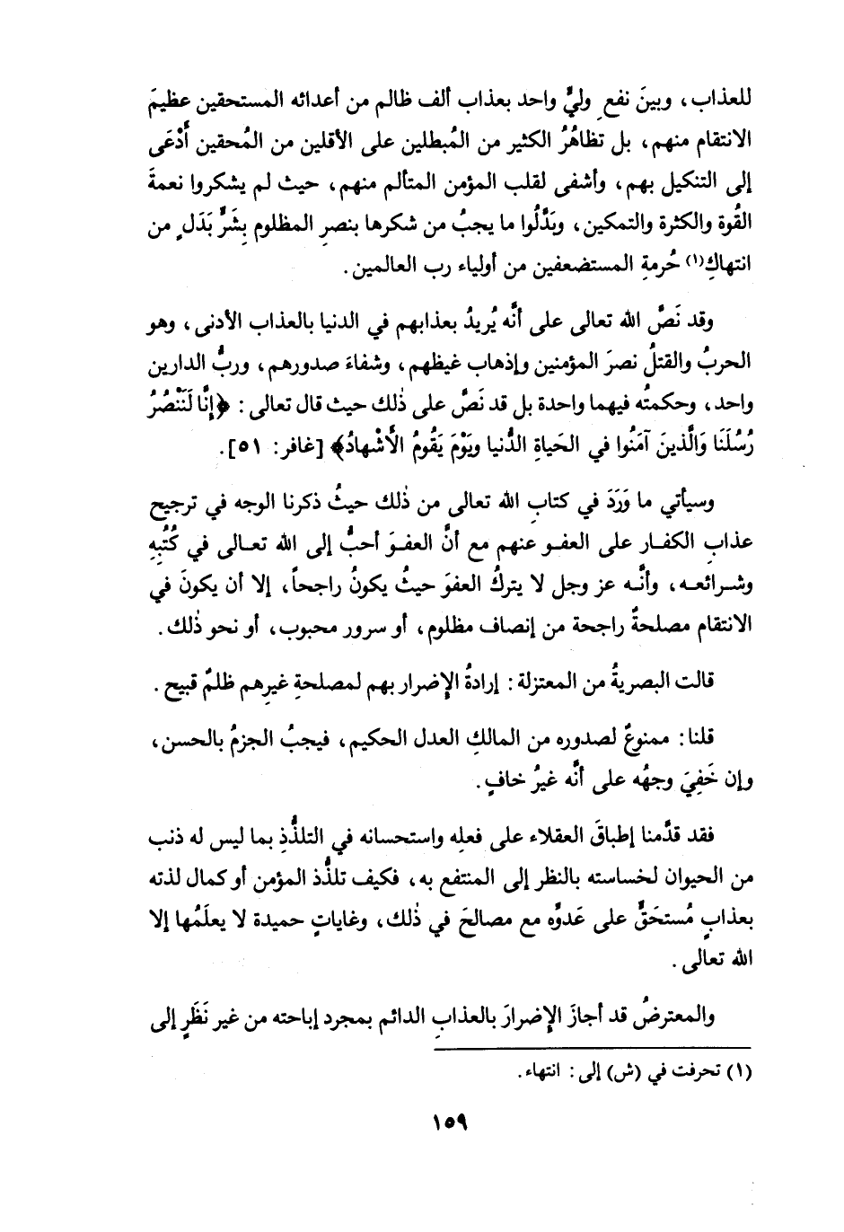 للعذاب، وبين نفع وليٍّ واحد بعذاب ألف ظالم من أعدائه المستحقين عظيمَ الانتقام منهم، بل تظاهُرُ الكثير من المُبطلين على الأقلين من المُحقين أدْعَى إلى التنكيل بهم، وأشفى لقلب المؤمن المتألم منهم، حيث لم يشكروا نعمة القوة والكثرة والتمكين، وبدَّلوا ما يجب من شكرها بنصر المظلوم بِشَرٍّ بَدَلٍ من انتهاك (¬1) حُرمةِ المستضعفين من أولياء رب العالمين.