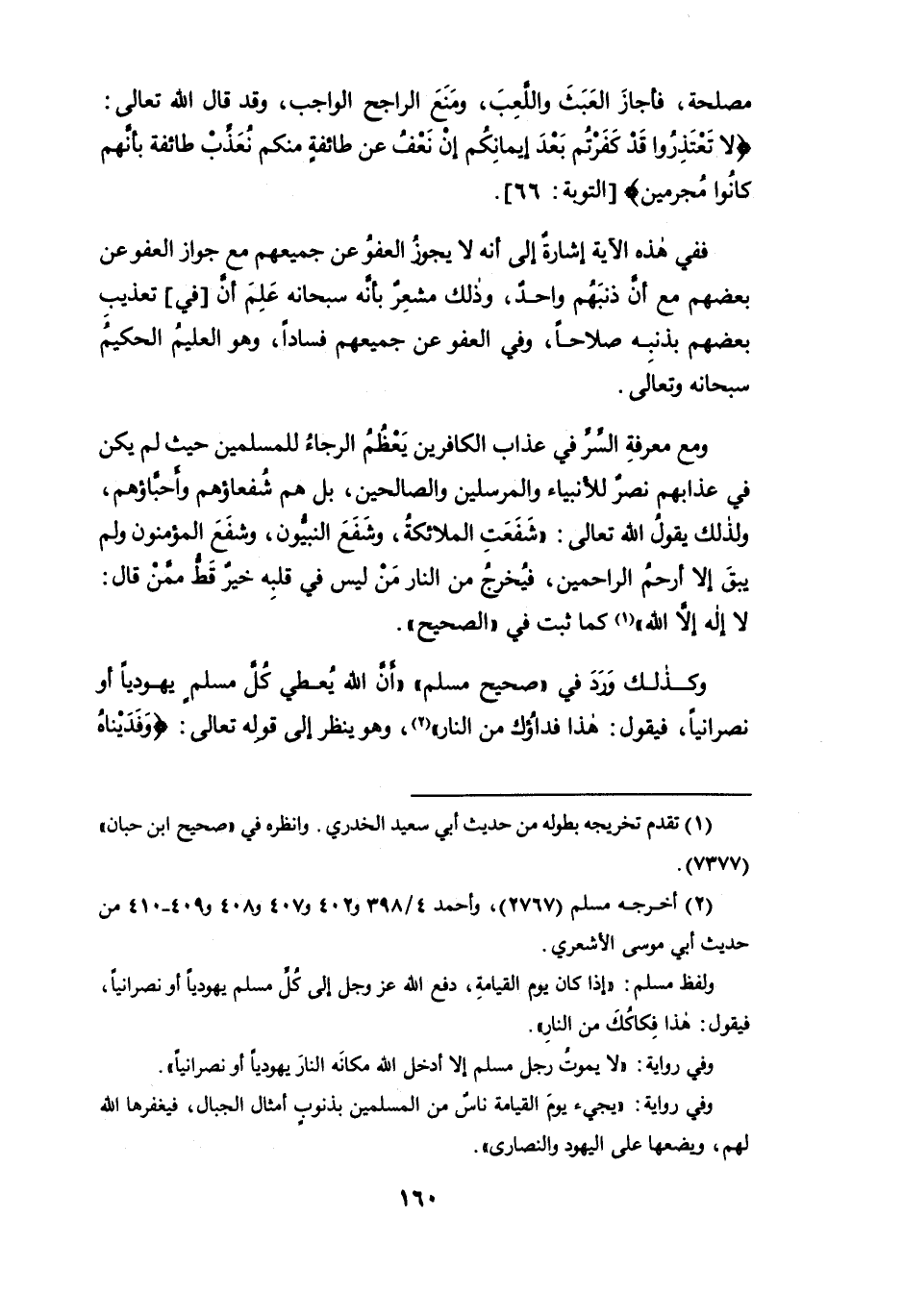 وكذلك ورد في "صحيح مسلم" " أن الله يُعطي كُلَّ مسلمٍ يهودياً أو نصرانياً، فيقول هذا فداؤُك من النار " (¬2)، وهو ينظر إلى قوله تعالى: {وَفَدَيْناهُ