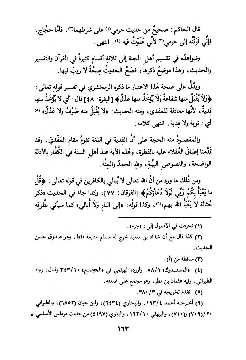 ويدل على صحة هذا الاعتبار ما ذكره الزمخشري في تفسير قوله تعالى: {وَلَا يُقْبَلُ مِنْهَا شَفَاعَةٌ وَلَا يُؤْخَذُ مِنْهَا عَدْلٌ} [البقرة: 48] قال: أي لا يُؤْخَذُ منها فِديةٌ، لأنها معادلة للمفدى، ومنه الحديث: " لا يُقْبَلُ منه صَرْفٌ ولا عَدْلٌ " (¬5) أي: توبة ولا فِدية. انتهى كلامه.