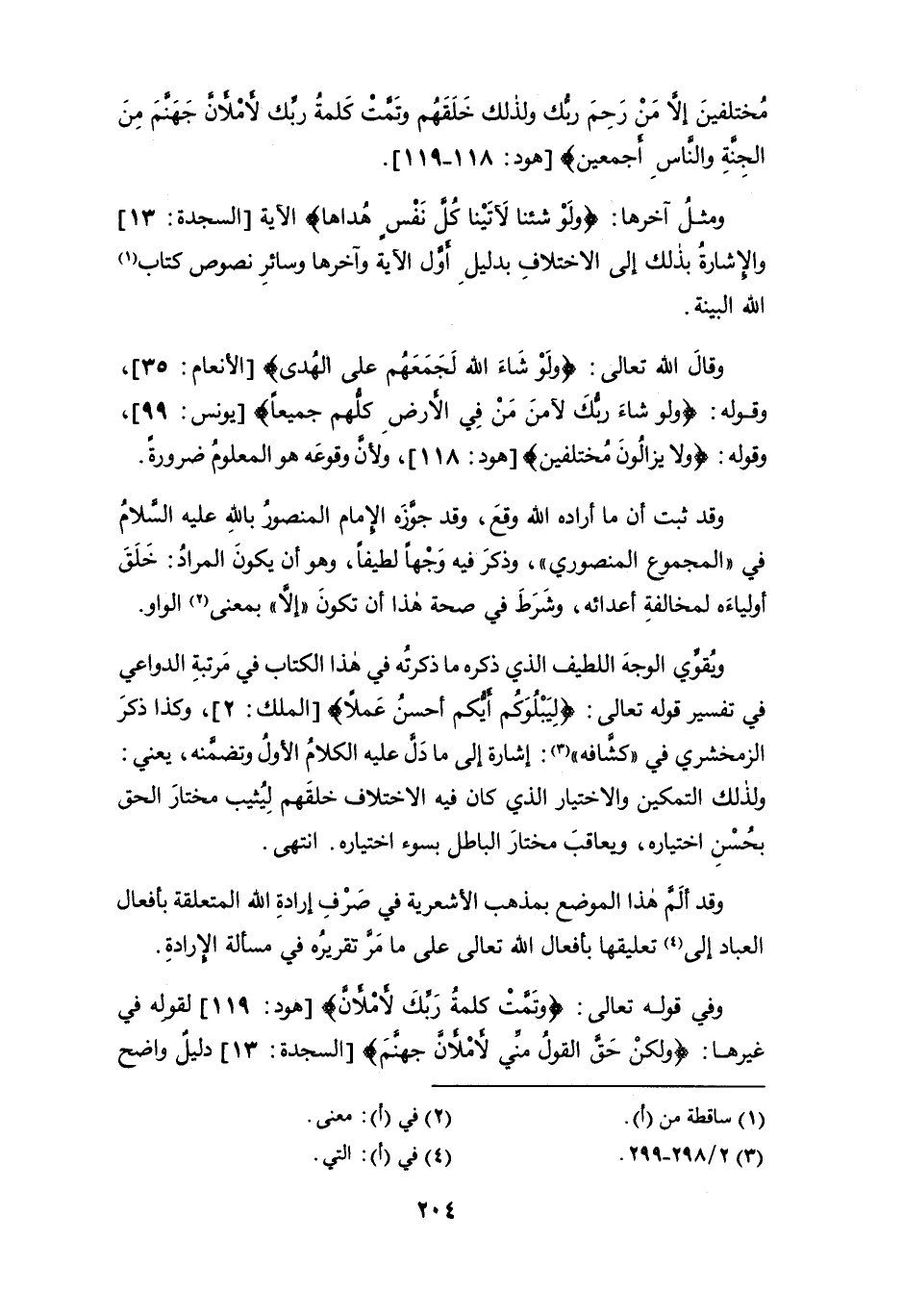 وقال الله تعالى: {ولَوْ شَاءَ الله لَجَمَعَهُم على الهُدى} [الأنعام: 35]، وقوله: {وَلَوْ شَاءَ رَبُّكَ لَآمَنَ مَنْ فِي الْأَرْضِ كُلُّهُمْ جَمِيعًا} [يونس: 99]، وقوله: {ولا يزالُونَ مُختلفين} [هود: 118]، ولأن وقوعه هو المعلوم ضرورةً.