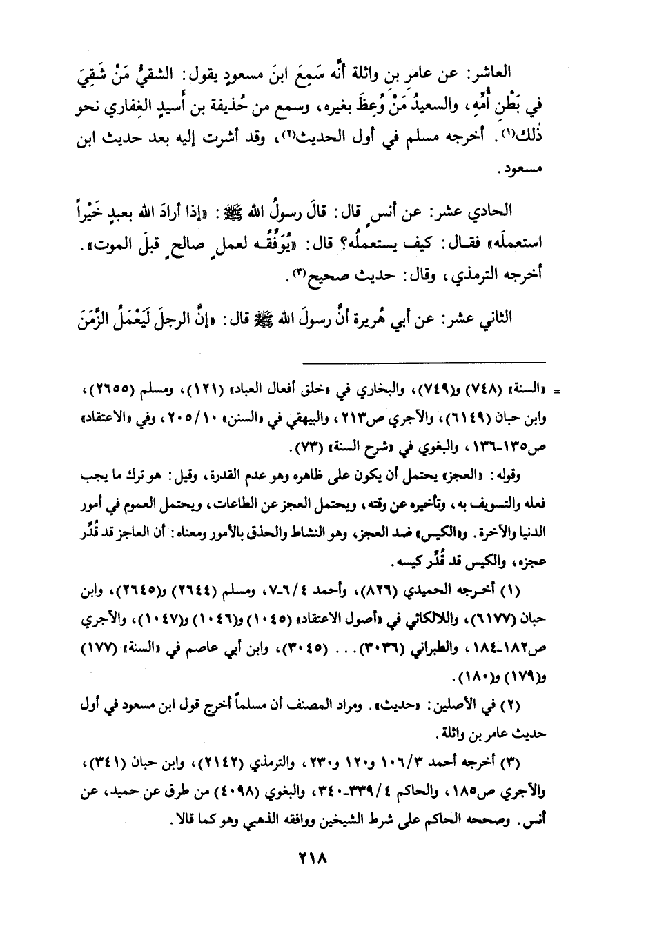 = " السنة " (748) و (749)، والبخاري في " خلق أفعال العباد " (121)، ومسلم (2655)، وابن حبان (6149)، والآجري ص 213، والبيهقي في " السنن " 10/ 205، وفي " الاعتقاد " ص 135 - 136، والبغوى في " شرح السنة " (73).