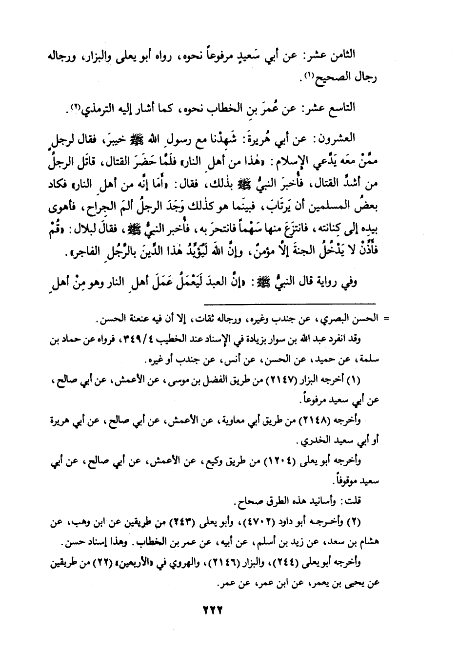 الثامن عشر: عن أبي سعيدٍ مرفوعاً نحوه، رواه أبو يعلى والبزار، ورجاله رجال الصحيح (¬1).