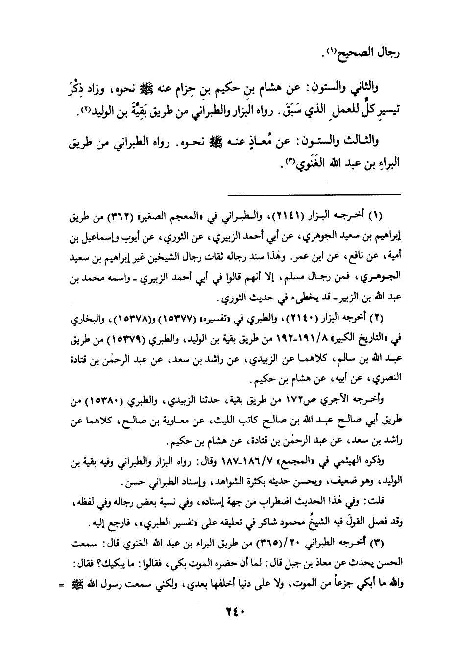 قلت: وفي هذا الحديث اضطراب من جهة إسناده، وفي نسبة بعض رجاله وفي لفظه، وقد فصل القول فيه الشيخ محمود شاكر في تعليقه على " تفسير الطبري "، فارجع إليه.