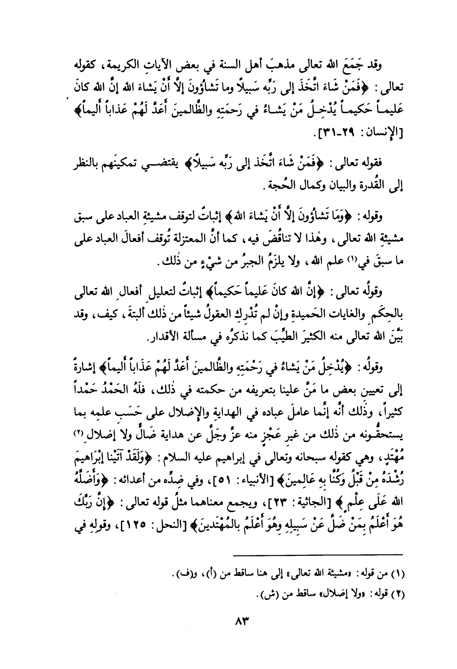 (¬1) من قوله: " مشيئة الله تعالى " إلى هنا ساقط من (أ)، و (ف).