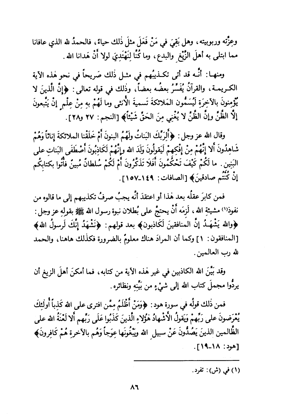 وقال الله عز وجل: {أَلِرَبِّكَ الْبَنَاتُ وَلَهُمُ الْبَنُونَ (149) أَمْ خَلَقْنَا الْمَلَائِكَةَ إِنَاثًا وَهُمْ شَاهِدُونَ (150) أَلَا إِنَّهُمْ مِنْ إِفْكِهِمْ لَيَقُولُونَ (151) وَلَدَ اللَّهُ وَإِنَّهُمْ لَكَاذِبُونَ (152) أَصْطَفَى الْبَنَاتِ عَلَى الْبَنِينَ (153) مَا لَكُمْ كَيْفَ تَحْكُمُونَ (154) أَفَلَا تَذَكَّرُونَ (155) أَمْ لَكُمْ سُلْطَانٌ مُبِينٌ (156) فَأْتُوا بِكِتَابِكُمْ إِنْ كُنْتُمْ صَادِقِينَ} [الصافات: 149 - 157].