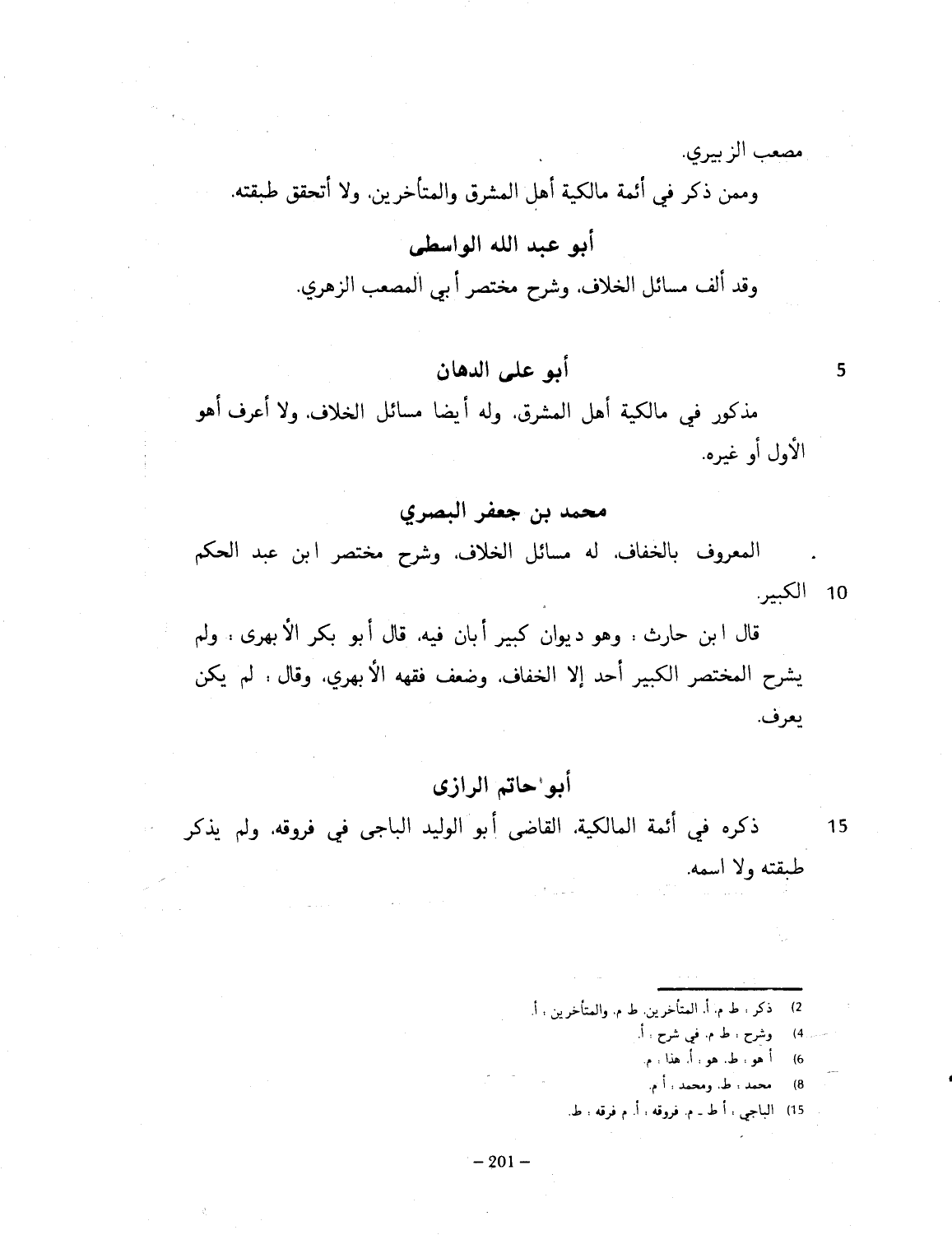 مصعب الزبيري، وممن ذكر من أئمة مالكية أهل المشرق، والمتأخرين، رضي الله عنهم. ولا أتحقق طبقته.