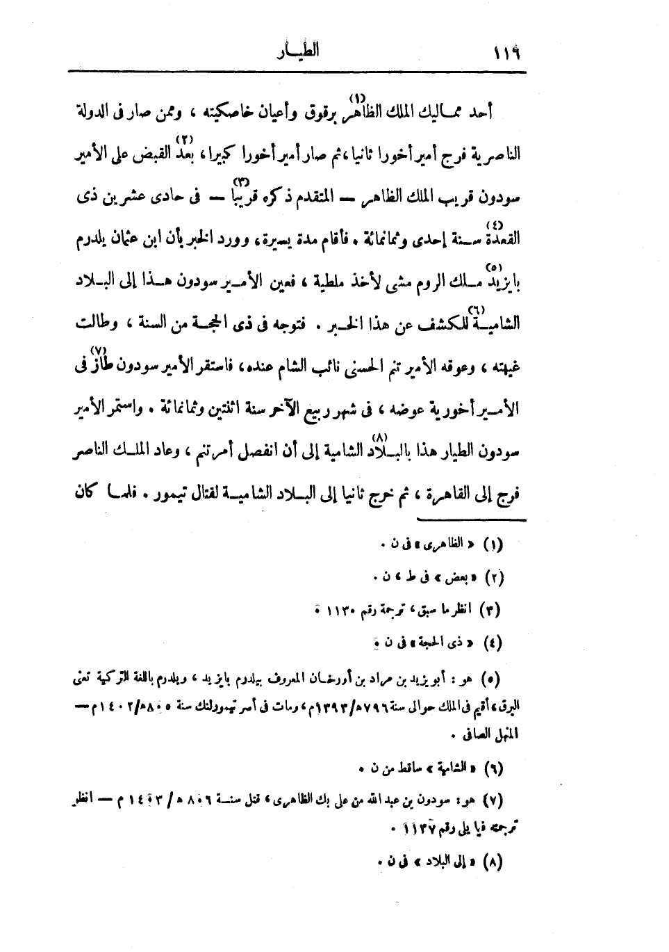 أحد مماليك الملك الظاهر برقوق وأعيان خاصكيته، وممن صار في الدولة الناصرية فرج أمير أخوراً ثانيا، ثم صار أمير أخورا كبيراً، بعد القبض على الأمير سودون قريب الملك الظاهر المتقدم ذكره قريباً في حادي عشرين ذي القعدة سنة إحدى وثمانمائة. فأقام مدة يسيرة، وورد الخبر بأن ابن عثمان يلدرم بايزيد ملك الروم مشى لأخذ ملطية، فعين الأمير سودون هذا إلى البلاد الشامية للكشف عن هذا الخبر. فتوجه في ذي الحجة من السنة، وطالت غيبته، وعوقه الأمير تنم الحسنى نائب الشام عنده، فاستقر الأمير سودون طاز في الأمير أخورية عوضه، في شهر ربيع الآخر سنة اثنتين وثمانمائة. واستمر الأمير سودون الطيار هذا بالبلاد الشامية إلى أن انفصل أمرتنم، وعاد الملك الناصر فرج إلى القاهرة، ثم خرج ثانياً إلى البلاد الشامية لقتال تيمور. فلما كان