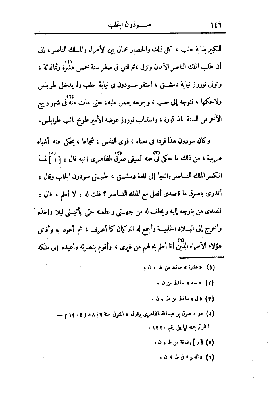 الكبير بنيابة حلب، كل ذلك والحصار عمال بين الأمراء والملك الناصر، إلى أن طلب الملك الناصر الأمان ونزل، ثم قتل في صفر سنة خمس عشرة وثمانمائة، وتولى نوروز نيابة دمشق، استقر سودون في نيابة حلب ولم يدخل طرابلس ولا حكمها، فتوجه إلى حلب، وجرحه يعمل عليه، حتى مات منه في شهر ربيع الآخر من السنة المذكورة، واستناب نوروز عوضه الأمير طوخ نائب طرابلس.