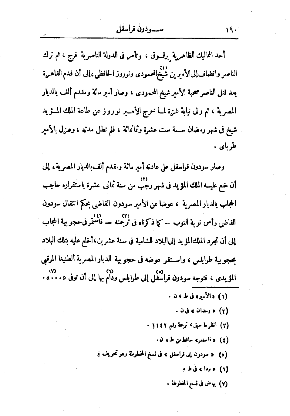 وصار سودون قراسقل على عادته أمير مائة ومقدم ألف بالديار المصرية، إلى أن خلع عليه الملك المؤيد في شهر رجب من سنة ثماني عشرة باستقراره حاجب الحجاب بالديار المصرية، عوضاً عن الأمير سودون القاضي بحكم انتقال سودون القاضي رأس نوبة النوب كما ذكرناه في ترجمته فاستمر في حجوبية الحجاب إلى أن تجرد الملك المؤيد إلى البلاد الشامية في سنة عشرين، أخلع عليه بتلك البلاد بحجوبية طرابلس، واستقر عوضه في حجوبية الديار المصرية ألطنبغا المرقبي المؤيدي، فتوجه سودون قراسقل إلى طرابلس ودام بها إلى أن توفي....