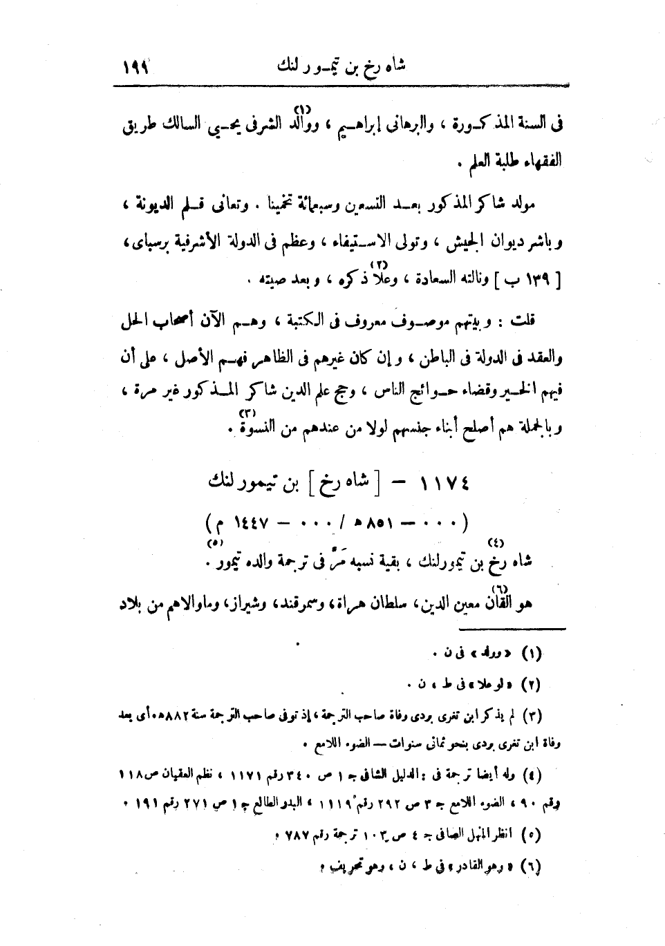 شاه رخ بن تيمورلنك، بقية نسبه مر في ترجمة والده تمور.