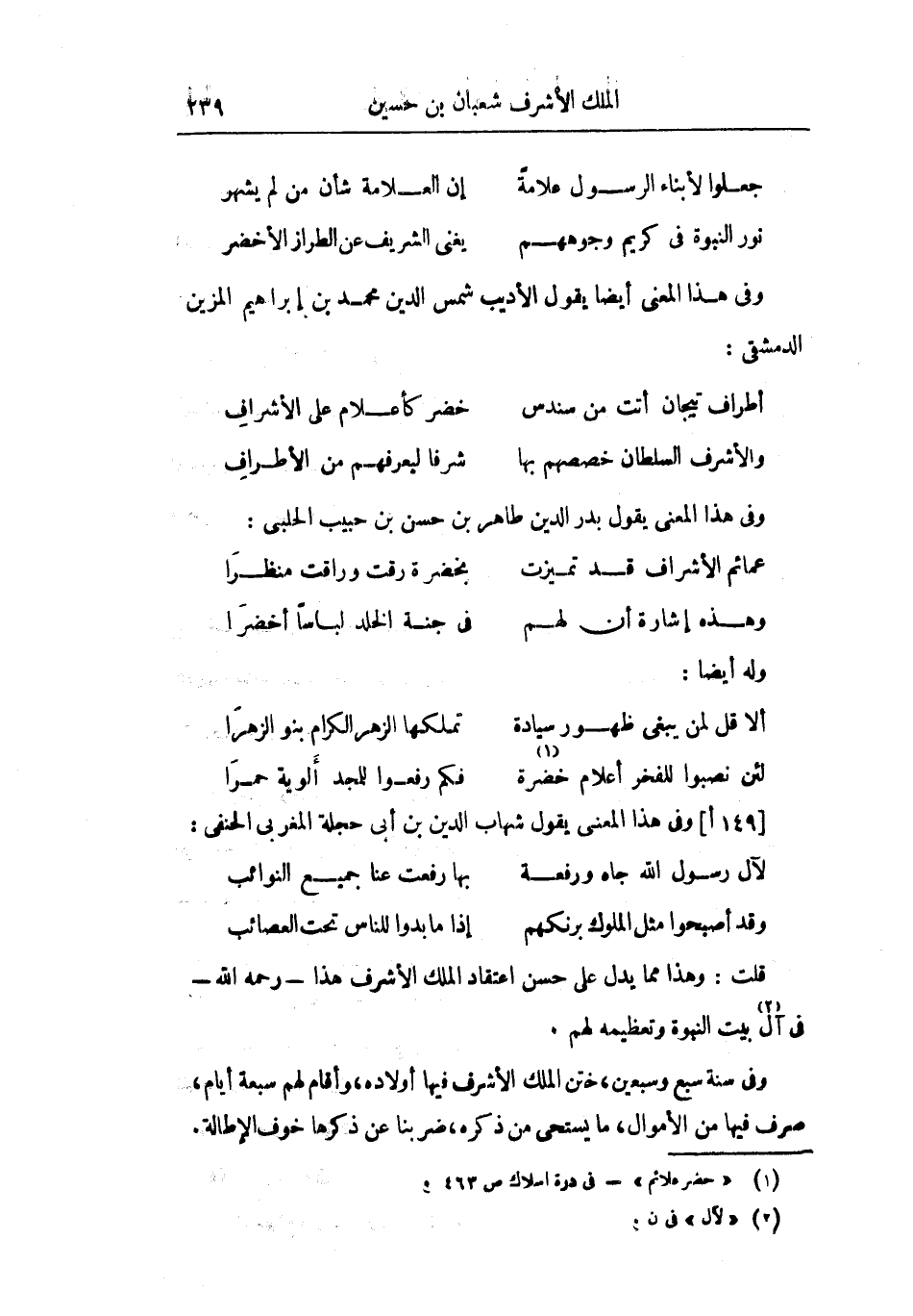 وقلت: وهذا مما يدل على حسن اعتقاد الملك الأشرف هذا رحمه الله وآل بيت النبوة وتعظيمه لهم.