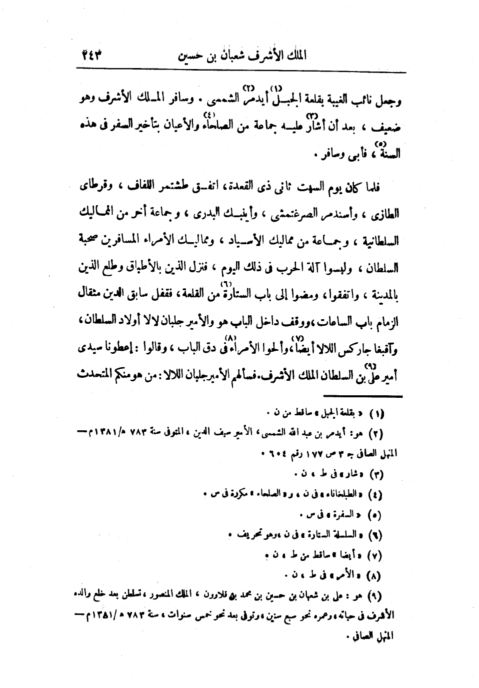 وجعل نائب الغيبة بقلعة الجبل أيدمر الشمسي. وسافر الملك الأشرف وهو ضعيف، بعد أن أشار عليه جماعة من الصلحاء والأعيان بتأخير السفر في هذه السنة، فأبى وسافر.