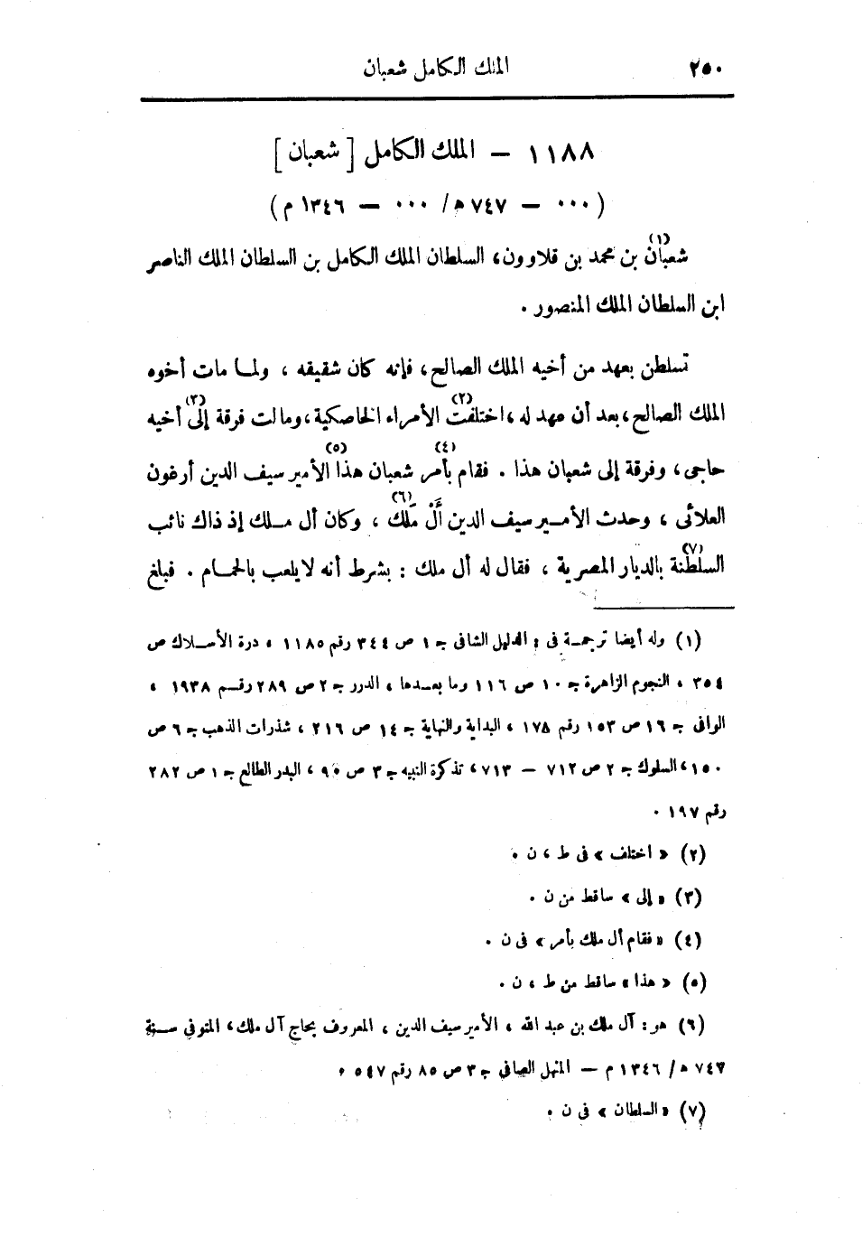 شعبان بن محمد بن قلاوون، السلطان الملك الكامل بن السلطان الملك الناصر ابن السلطان الملك المنصور.