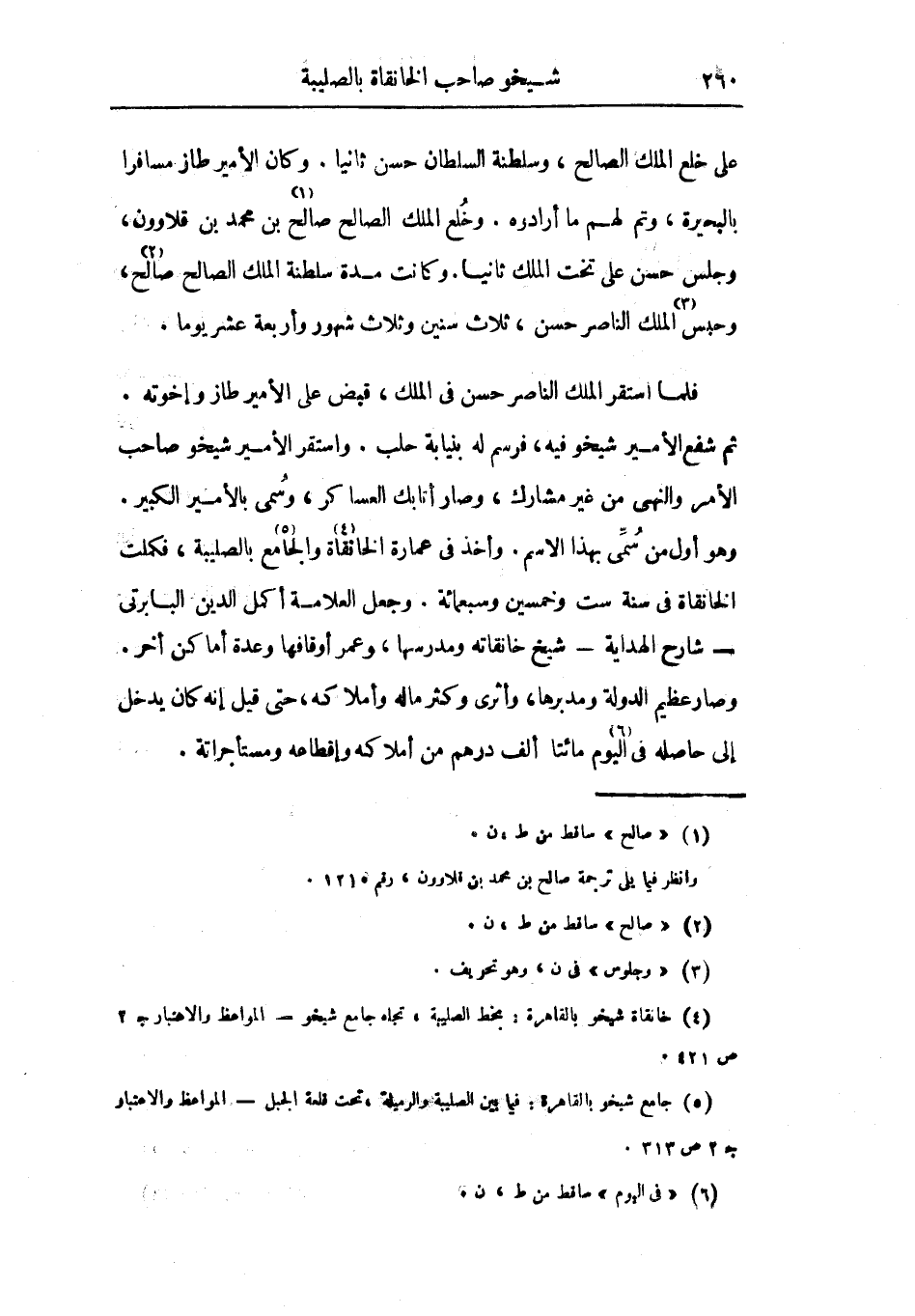 فلما استقر الملك الناصر حسن في الملك، قبض على الأمير طاز وإخوته. ثم شفع الأمير شيخو فيه، فرسم له بنيابة حلب. واستقر الأمير شيخو صاحب الأمر والنهي من غير مشارك، وصار أتابك العساكر، وسمي بالأمير الكبير. وهو أول من سمي بهذا الاسم. وأخذ في عمارة الخانقاة والجامع بالصليبة، فكملت الخانقاة في سنة ست وخمسين وسبعمائة. وجعل العلامة أكمل الدين البابرتي شارع الهداية شيخ خانقاته ومدرسها، وعمر أوقافها وعدة أماكن أخر. وصار عظيم الدولة ومدبرها، وأثرى وكثر ماله وأملاكه، حتى قيل إنه كان يدخل إلى حاصله في اليوم مائتا ألف درهم من أملاكه وإقطاعه ومستأجراته.