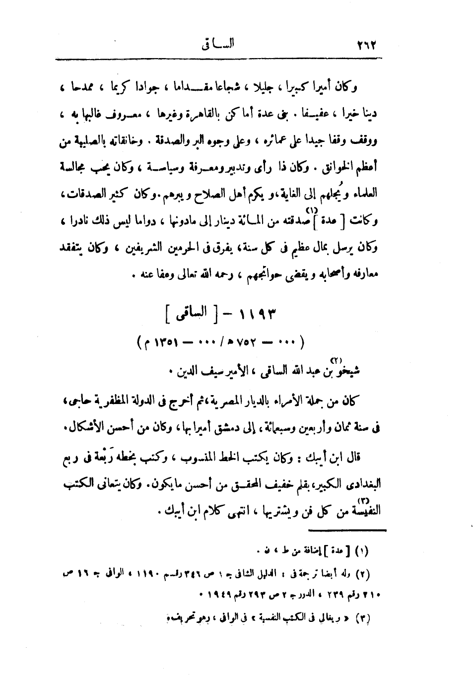 قال ابن أيبك: وكان يكتب الخط المنسوب، وكتب بخطه ربعة في ربع البغدادي الكبير، بقلم خفيف المحقق من أحسن ما يكون. وكان يتعانى الكتب النفيسة من كل فن ويشتريها، انتهى كلام ابن أيبك.