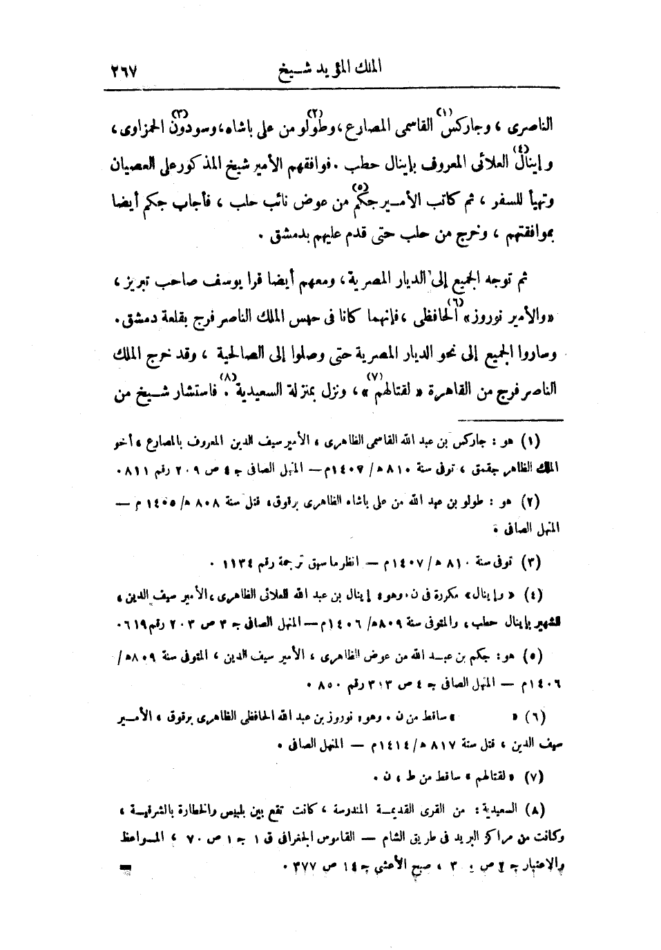 الناصري، وجاركس القاسمي المصارع، وطولو من على باشاه، وسودون الحمزاوي، وإينال العلائي المعروف بإينال حطب. فوافقهم الأمير شيخ المذكور على العصيان وتهيأ للسفر، ثم كاتب الأمير جكم من عوض نائب حلب، فأجاب جكم أيضاً بموافقتهم، وخرج من حلب حتى قدم عليهم بدمشق.