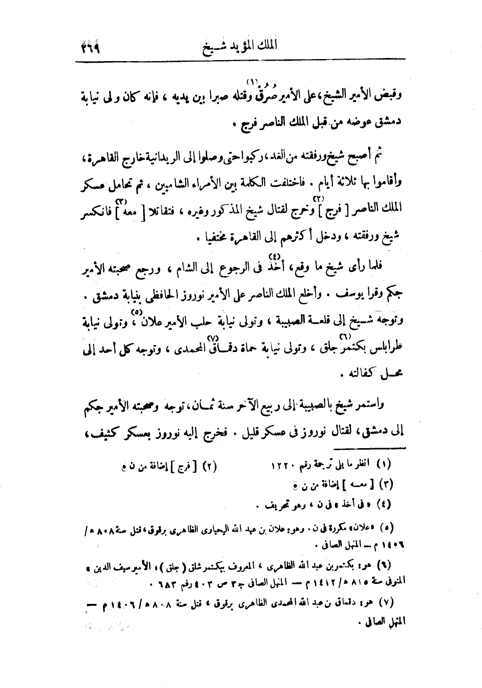 وقبض الأمير الشيخ، على الأمير صرق وقتله صبراً بين يديه، فإنه كان ولي نيابة دمشق عوضه من قبل الملك الناصر فرج.