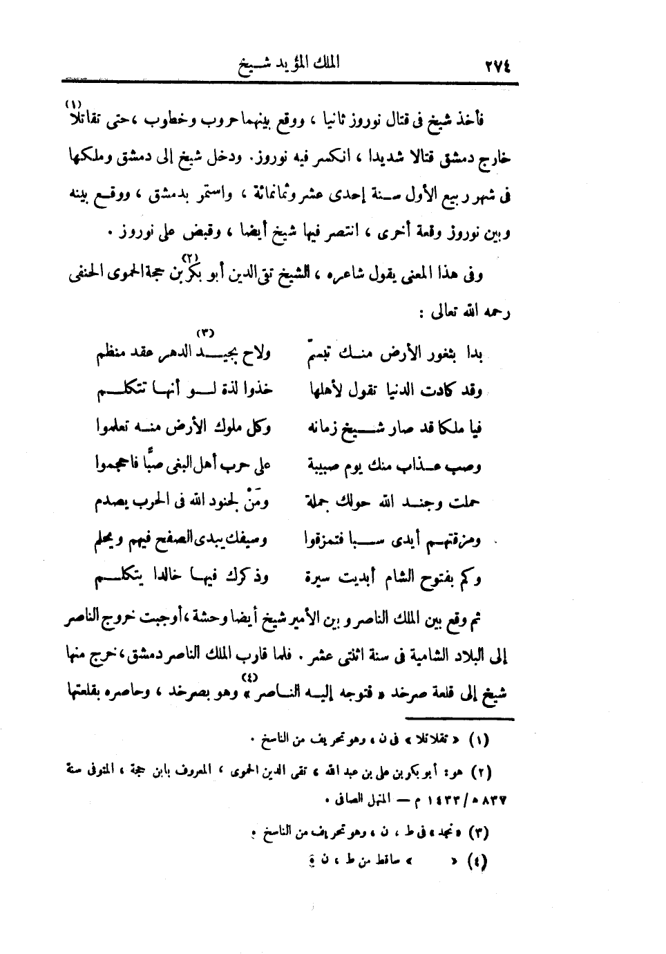 وفي هذا المعنى يقول شاعره، الشيخ تقي الدين أبو بكر حجة الحموي الحنفي رحمه الله تعالى: