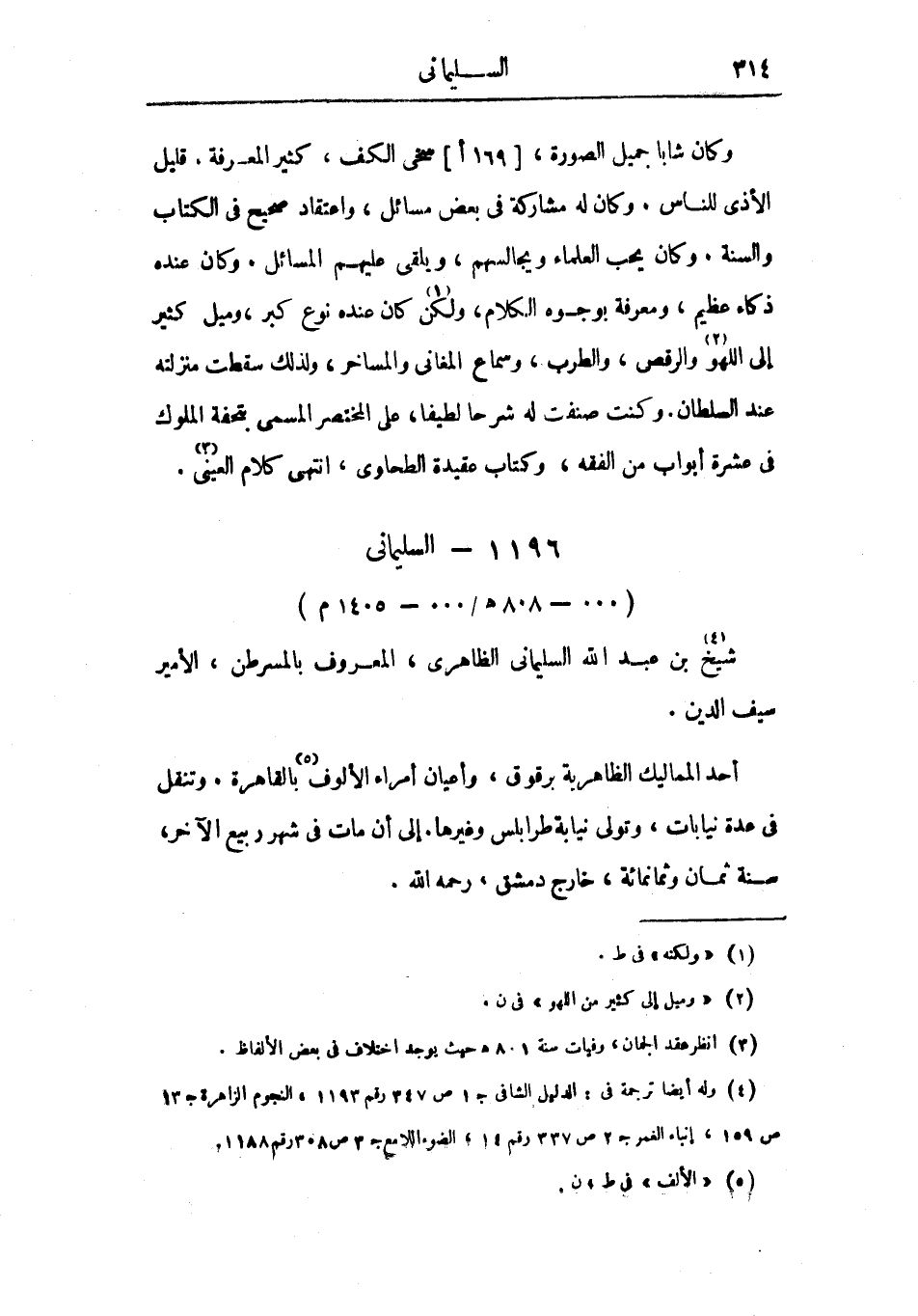 وكان شاباً جميل الصورة، سخي الكف، كثير المعرفة. قليل الأذى للناس. وكان له مشاركة في بعض الأمور مسائل، واعتقاد صحيح في الكتاب والسنة، وكان يحب العلماء ويجالسهم، ويلقي عليهم المسائل. وكان عنده ذكاء عظيم، ومعرفة بوجوه الكلام، ولكن كان عنده نوع كبر، وميل كثير إلى اللهو والرقص، والطرب، وسماع المعاني والمساخر، ولذلك سقطت منزلته عند السلطان. وكنت صنفت له شرحاً لطيفاً، على المختصر المسمى بتحفة الملوك في عشرة أبواب من الفقه، وكتاب عقيدة الطحاوي، انتهى كلام العيني.