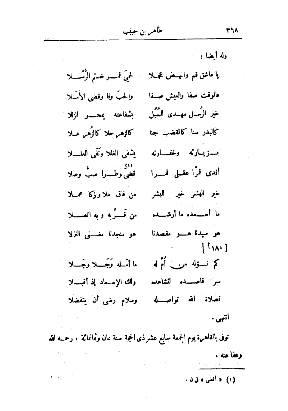 يا عاشق قم وانهض عجلا ... لحمى قمر ختم الرسلا