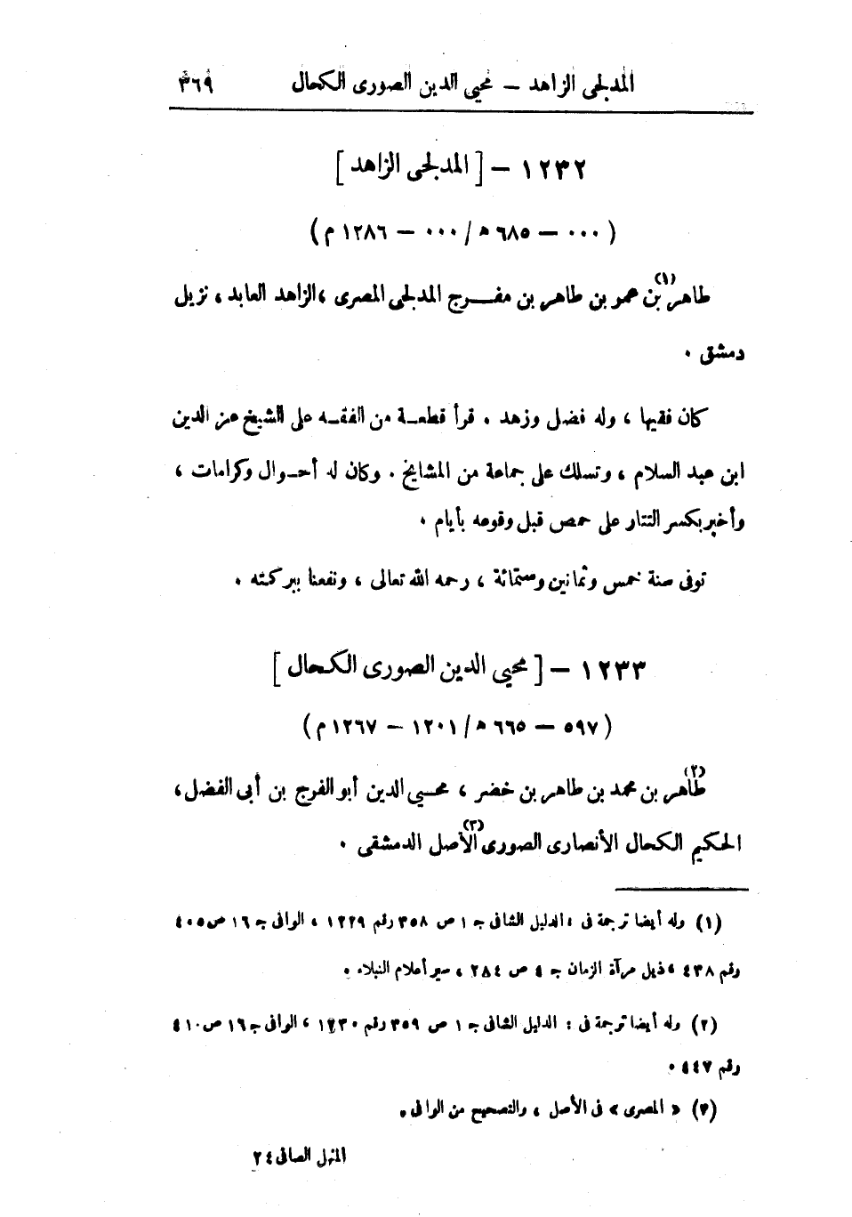 طاهر بن عمر بن طاهر بن مفرج المدلجي المصري، الزاهد العابد، نزيل دمشق.