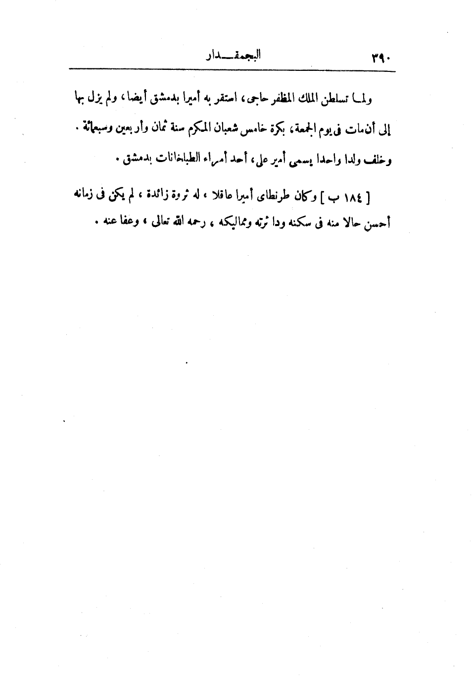 ولما تسلطن الملك المظفر حاجي، استقر به أميراً بدمشق أيضاً، ولم يزل بها إلى أن مات في يوم الجمعة، بكرة خامس شعبان المكرم سنة ثمان وأربعين وسبعمائة. وخلف ولده واحداً يسمى أمير علي، أحد أمراء الطبلخانات بدمشق.