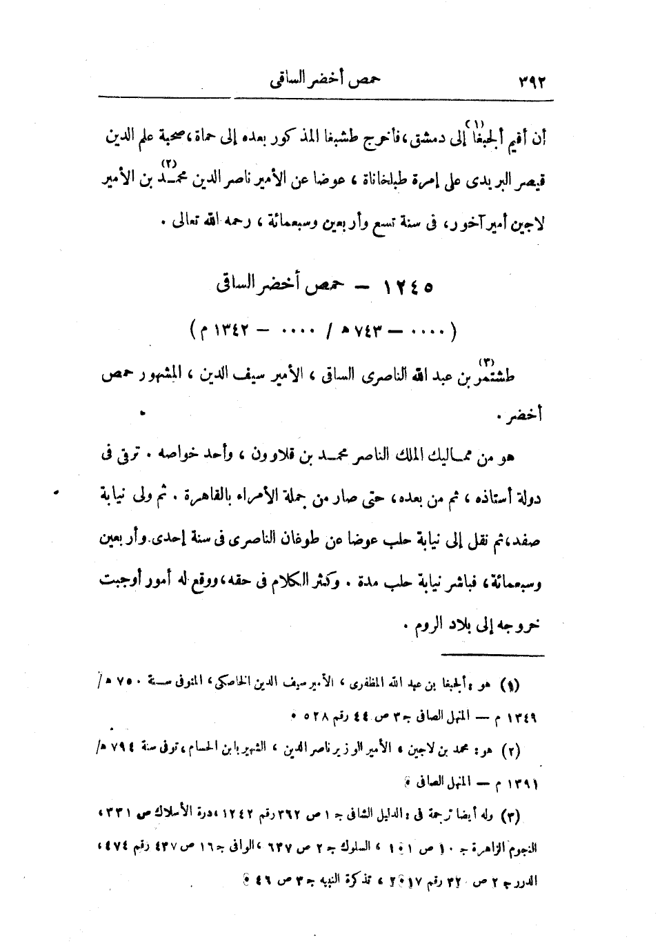 أن أقيم ألجبغا إلى دمشق، فأخرج طبشغا المذكور بعده إلى حماة، صحبة علم الدين قيصر لابريدي على إمرة طبلخاناة، عوضاً عن الأمير ناصر الدين محمد بن الأمير لاجين أمير آخور، في سنة أربعين وسبعمائة، رحمه الله تعالى.