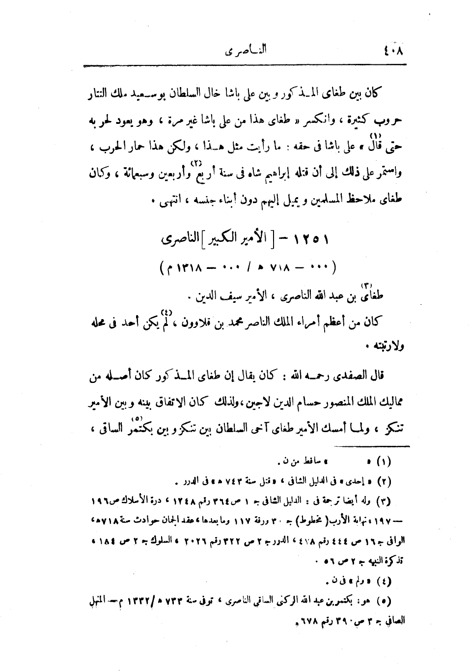 كان من أعظم أمراء الملك الناصر محمد بن قلاوون، لم يكن أحد في محله ولا رتبته.