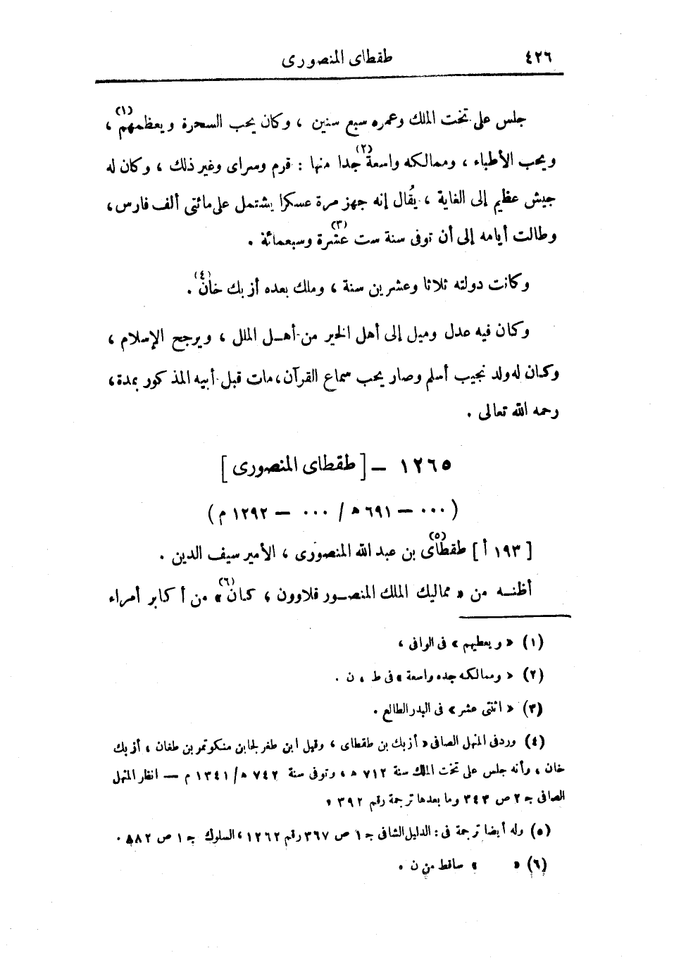 جلس على تخت الملك وعمره سبع سنين وكان يحب السحرة ويعظمهم، ويحب الأطباء، وممالكه واسعة جداً منها: قرم وسراي وغير ذلك، وكان له جيش عظيم إلى الغاية، يقال إنه جهز مرة عسكراً يشتمل على مائتي ألف فارس، وطالت أيامه إلى أن توفي سنة ست عشرة وسبعمائة.