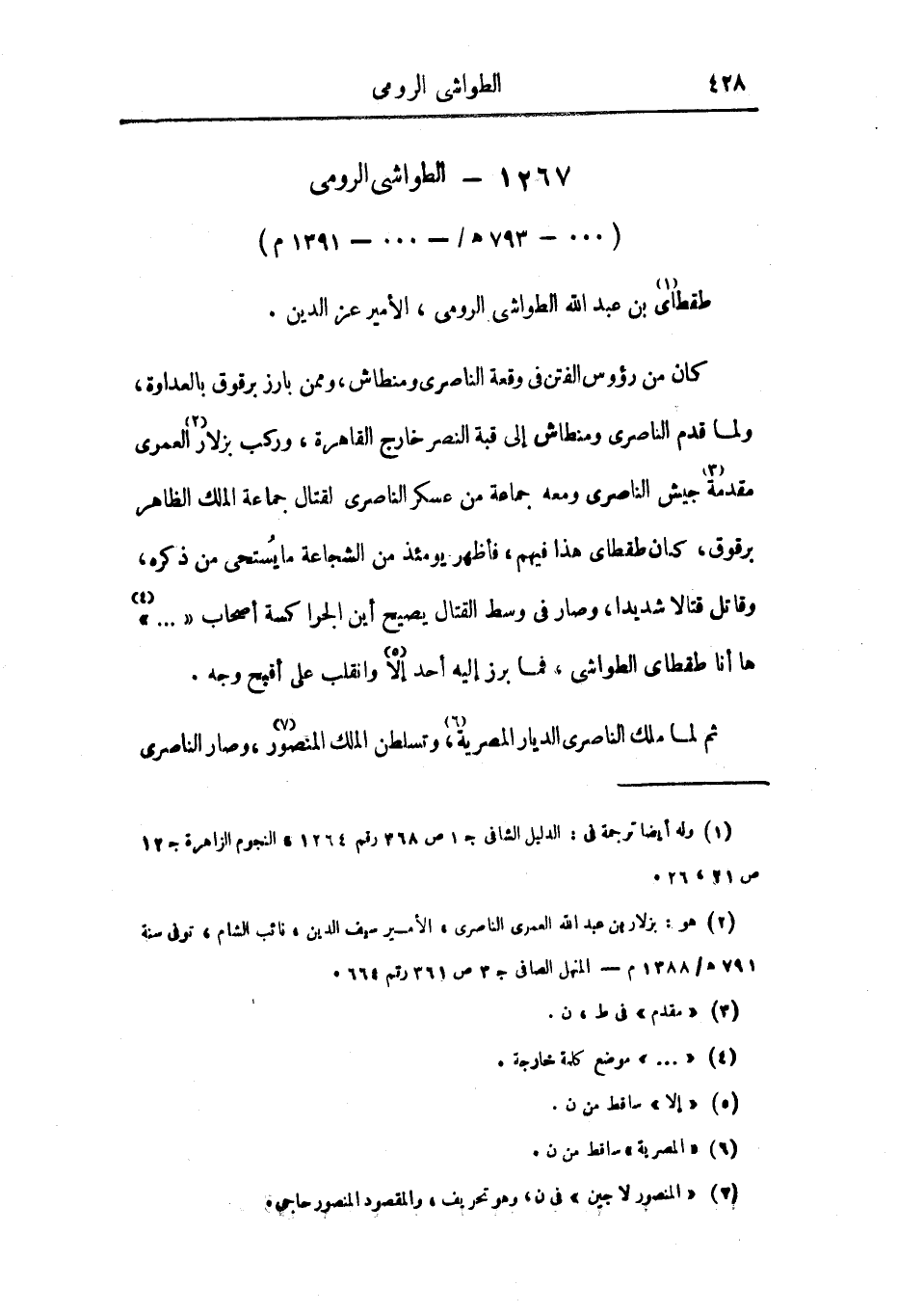 كان من رؤوس الفتن في وقعة الناصري ومنطاش، وممن بارز برقوق بالعداوة، ولما قدم الناصري ومنطاش إلى قبة النصر خارج القاهرة، وركب بزلار العمرة مقدمة جيش الناصري ومعه جماعة من عسكر الناصري لقتال جماعة الملك الظاهر برقوق، كان طقطاي هذا فيهم، فأظهر يومئذ من الشجاعة ما يستحى من ذكره، وقاتل قتالاً شديداً، وصار في وسط القتال يصيح أين الجراكسة أصحاب ... ها أنا طقطاي الطواشي، فما برز إليه أحد إلا وانقلب على أقبح وجه.