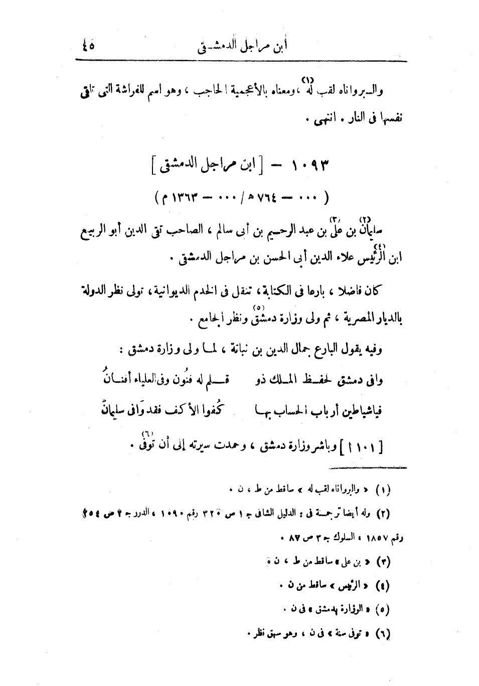 سليمان بن علي بن عبد الرحيم بن أبي سالم، الصاحب تقي الدين أبو الربيع ابن الرئيس علاء الدين أبي الحسن بن مراجل الدمشقي.