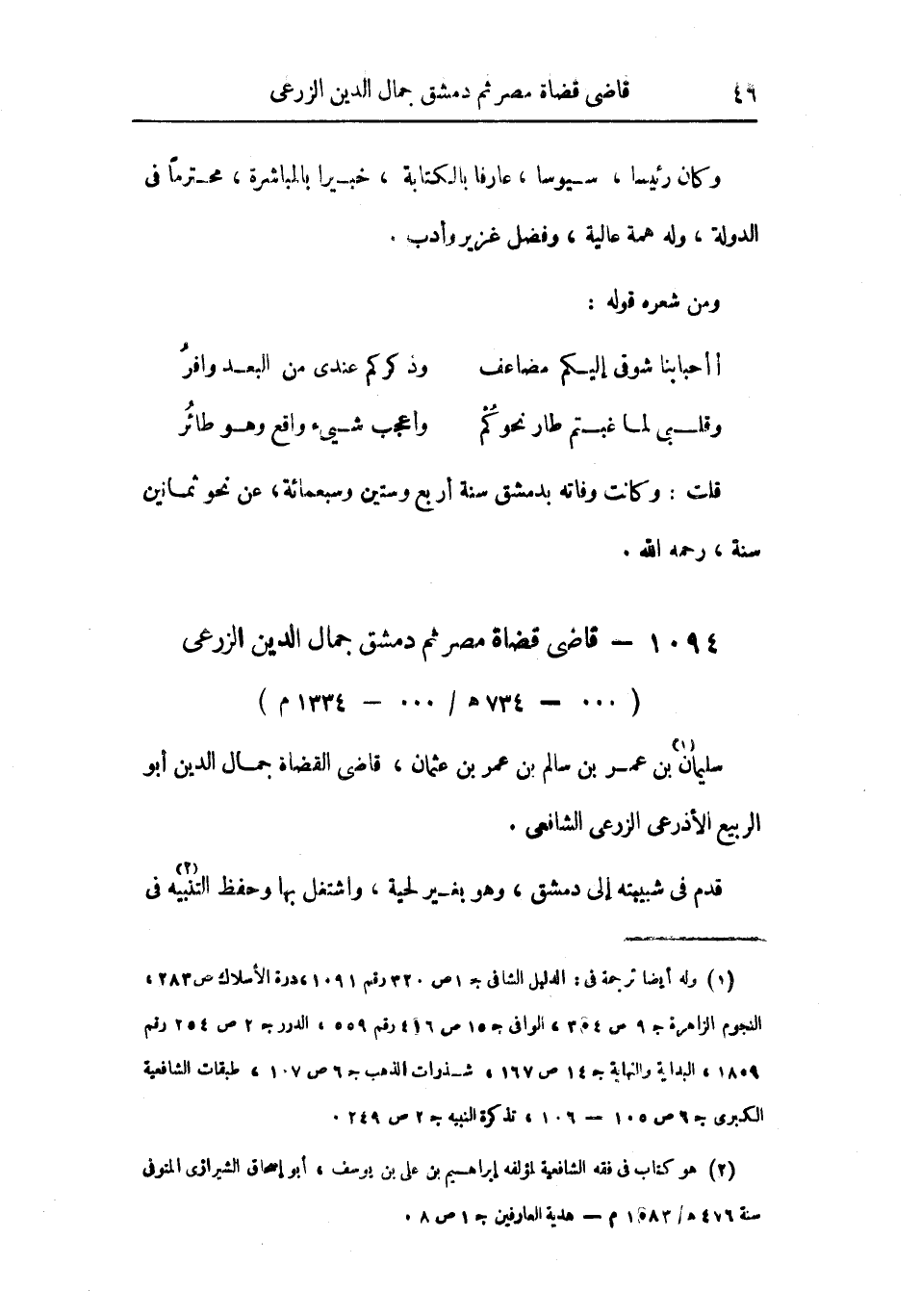 1094 - قاضي قضاة مصر ثم دمشق جمال الدين الزرعي