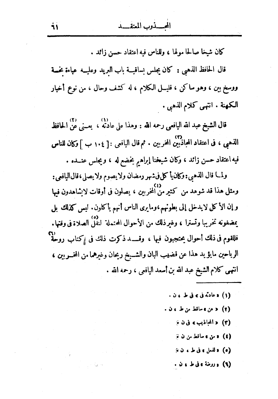 قال الشيخ عبد الله اليافعي رحمه الله: وهذا على عادته، يعني عن الحافظ الذهبي، في اعتقاد المجاذبين المخربين. ثم قال اليافعي: وكان للناس فيه اعتقاد حسن زائد، وكان شيخنا إبراهيم يخضع له، ويجلس عنده.