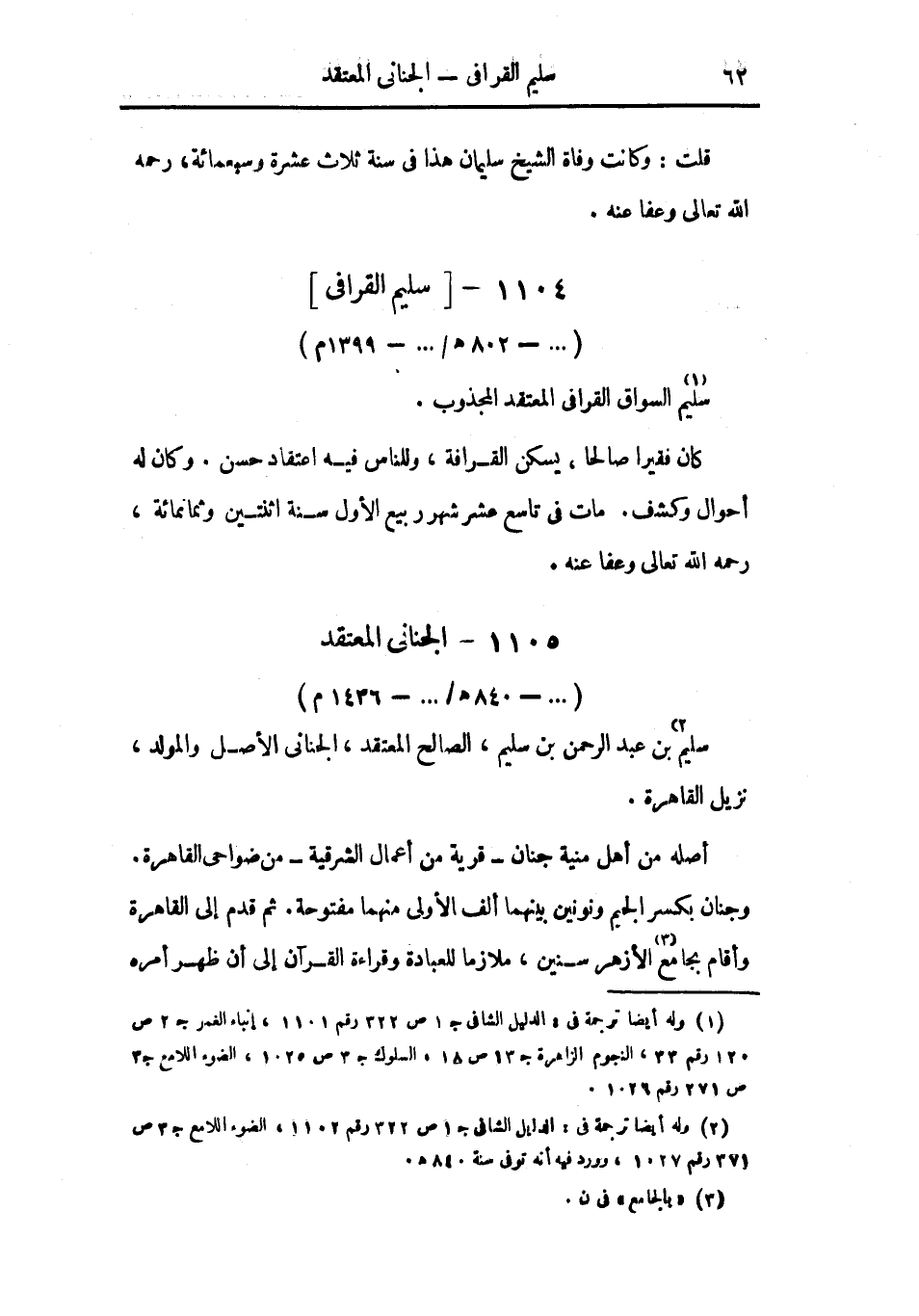 سليم بن عبد الرحمن بن سليم، الصالح المعتقد، الجناني الأصل والمولد، نزيل القاهرة.