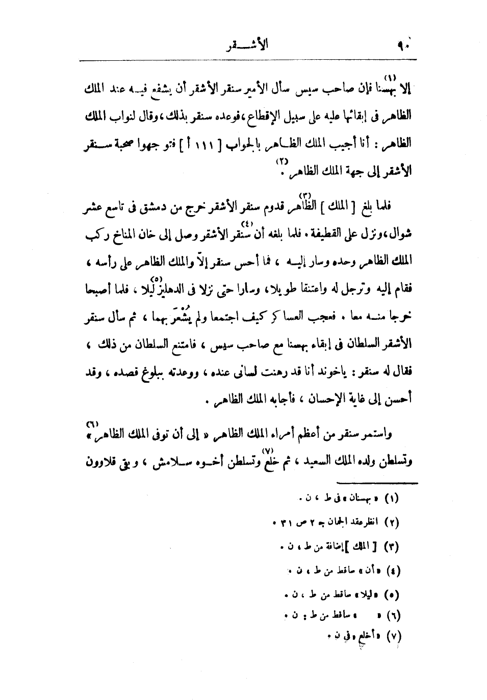 إلا بهسنا فإن صاحب سيس سأل الأمير سنقر الأشقر أن يشفع فيه عند الملك الظاهر في إبقائها عليه على سبيل الإقطاع، فوعده سنقر بذلك، وقال لنواب الملك الظاهر: أنا أجيب الملك الظاهر بالجواب فتوجهوا صحبة سنقر الأشقر إلى جهة الملك الظاهر.