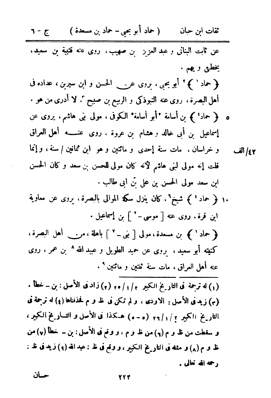 7455 - حَمَّاد بن مسْعدَة مولى بني باهلة من أهل الْبَصْرَة كنيته أَبُو سعيد يروي عَن حميد بن الطَّوِيل وَعبيد الله بْن عمر روى عَنهُ أهل الْعرَاق مَاتَ سنة ثِنْتَيْنِ وَمِائَتَيْنِ