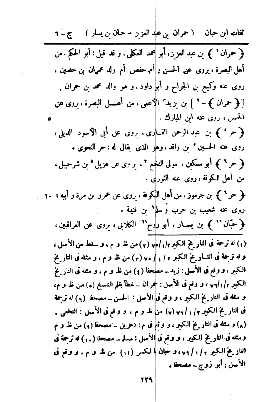 7531 - حمْرَان بن عبد الْعَزِيز أَبُو مُحَمَّد العكلي وَقد قيل أَبُو الحكم من أهل الْبَصْرَة يروي عَن الْحسن وَأم حَفْص أم ولد عمرَان بن حُصَيْن روى عَنهُ وَكِيع بن الْجراح وَأَبُو دَاوُد وَهُوَ وَالِد مُحَمَّد بن حمْرَان