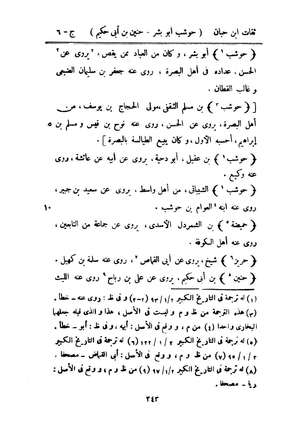 7554 - حَوْشَب أَبُو بشر وَكَانَ من الْعباد مِمَّن يقص يروي عَن الْحسن عداده فِي أهل الْبَصْرَة روى عَنهُ جَعْفَر بْن سُلَيْمَان الضبعِي وغالب الْقطَّان