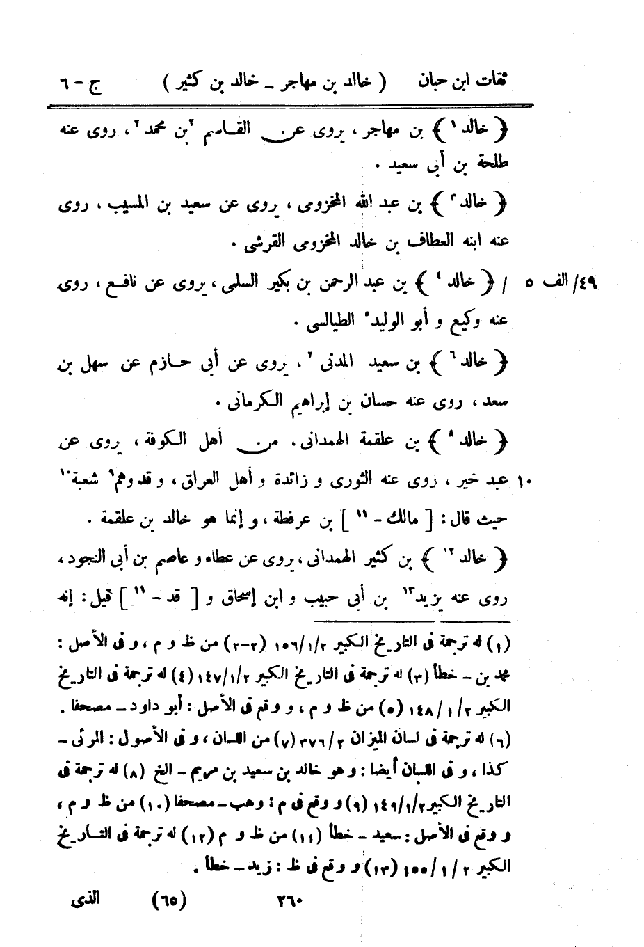 7637 - خَالِد بن عبد الرَّحْمَن بن بكير السّلمِيّ يروي عَن نَافِع روى عَنهُ وَكِيع وَأَبُو الْوَلِيد الطَّيَالِسِيّ