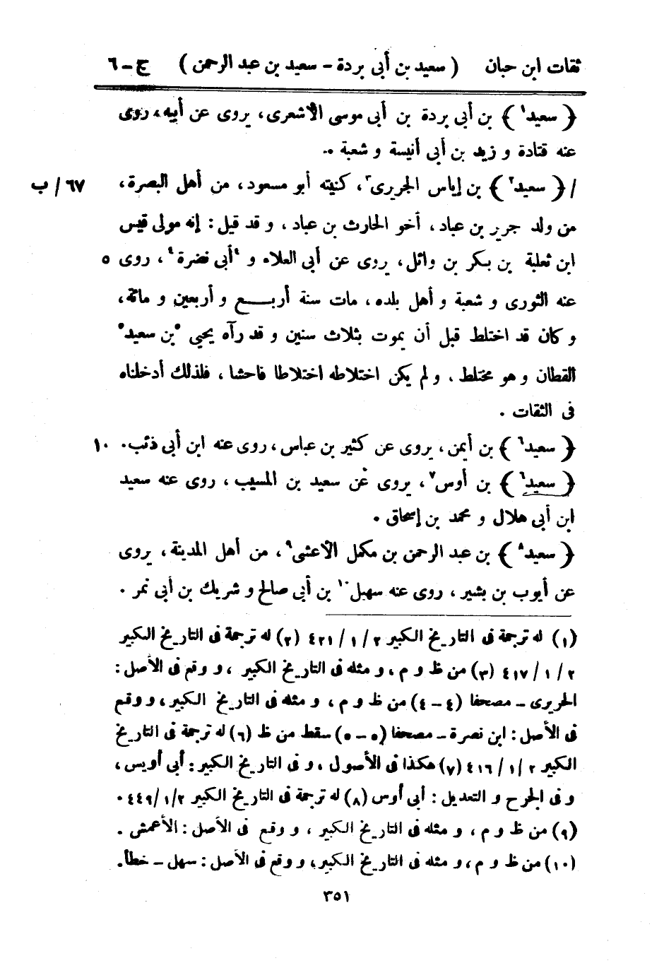 8059 - سعيد بن إِيَاس الْجريرِي كنيته أَبُو مَسْعُود من أهل الْبَصْرَة من ولد جرير بن عباد أَخُو الْحَارِث بن عباد وَقد قيل إِنَّه مولى قيس بن ثَعْلَبَة بن بكر بن وَائِل يروي عَن أبي الْعَلَاء وَأبي نَضرة روى عَنهُ الثَّوْريّ وَشعْبَة وَأهل بَلَده مَاتَ سنة أَربع وَأَرْبَعين وَمِائَة وَكَانَ قد اخْتَلَط قبل أَن يَمُوت بِثَلَاث سِنِين وَقد رَآهُ يحيى بن سعيد الْقطَّان وَهُوَ مختلط وَلم يكن اختلاطا فَاحِشا فَلذَلِك أدخلْنَاهُ فِي الثِّقَات