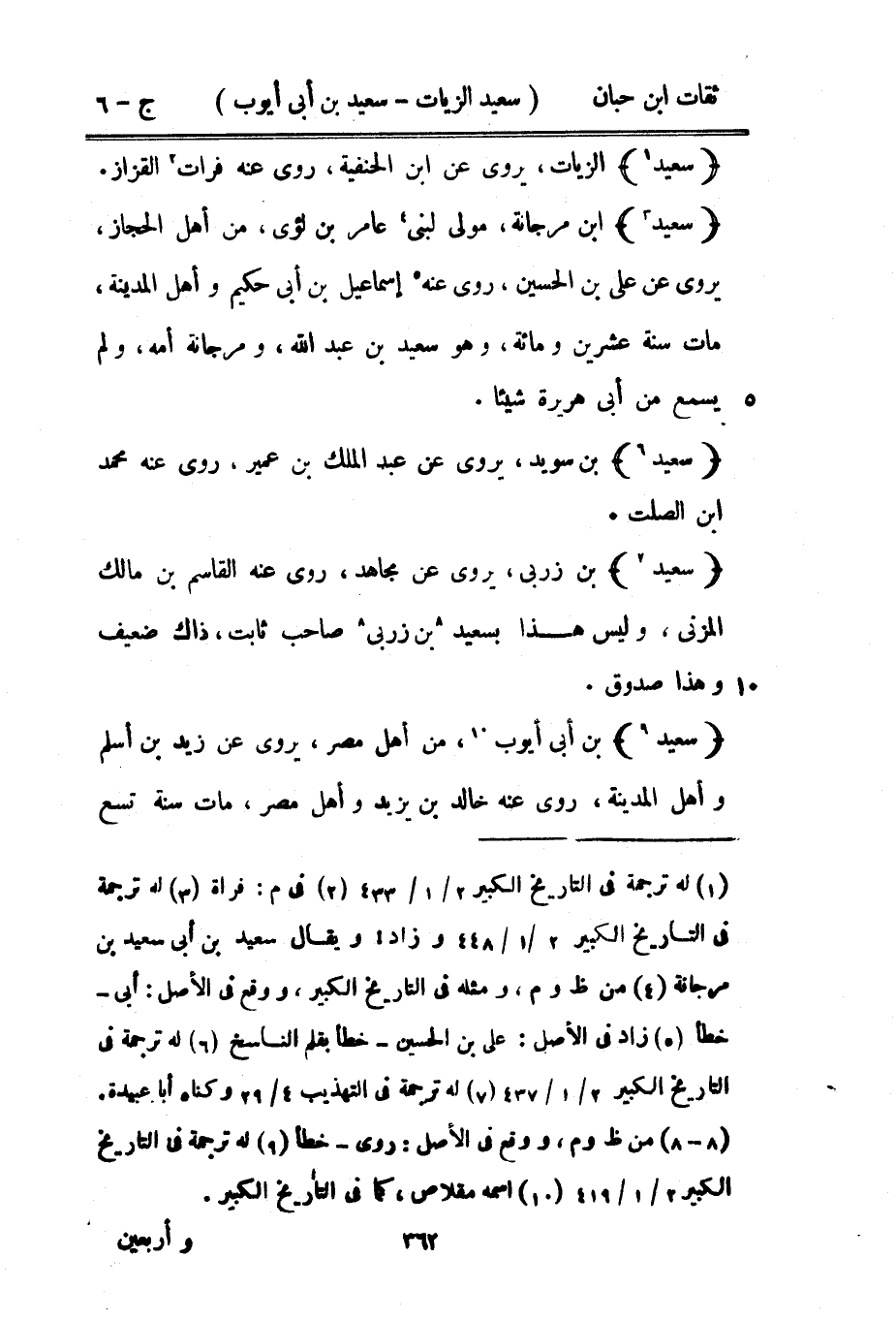 8116 - سعيد بن أبي أَيُّوب من أهل مصر يروي عَن زيد بن أسلم وَأهل الْمَدِينَة روى عَنهُ خَالِد بن يزِيد وَأهل مصر مَاتَ سنة تسع