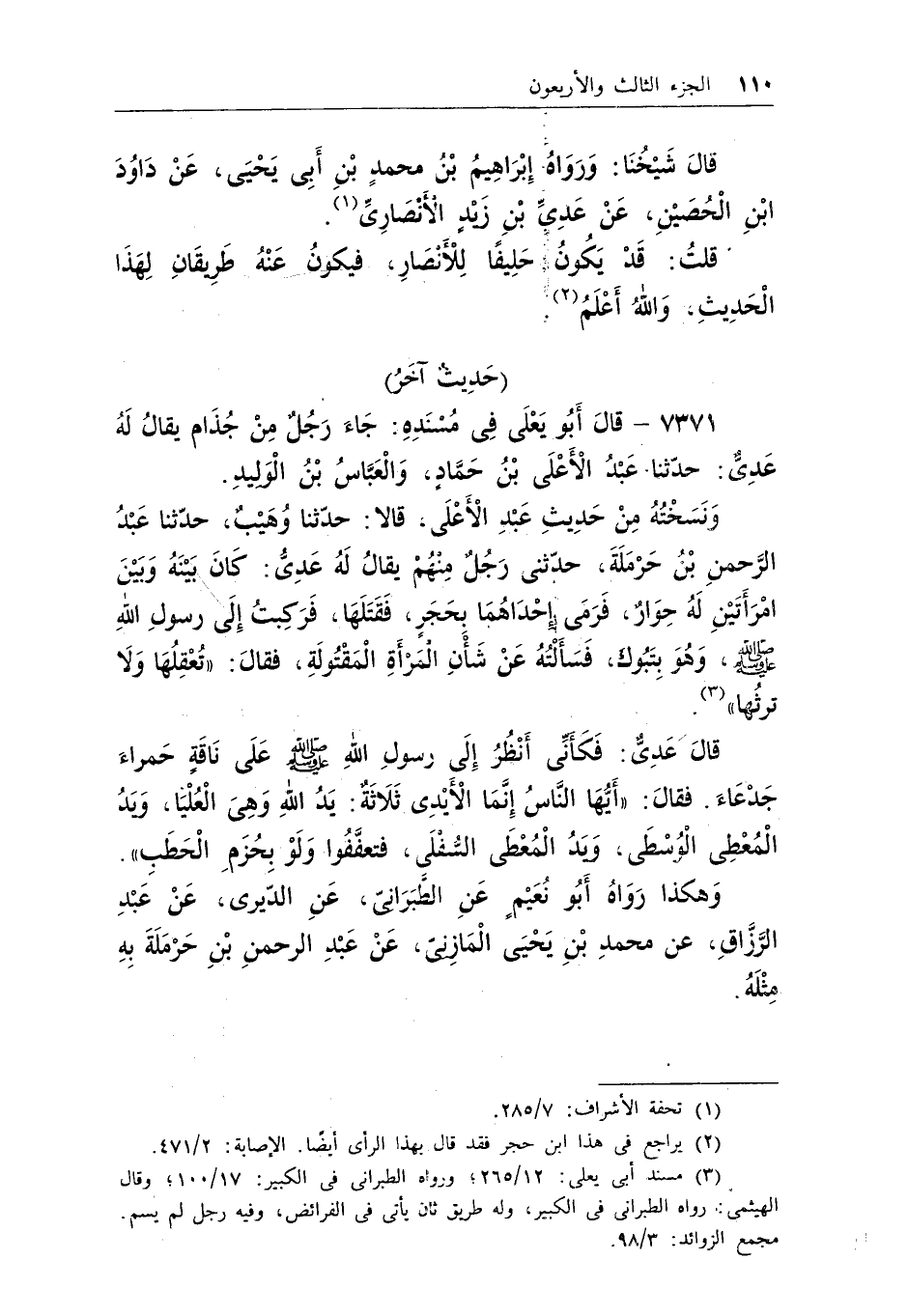 7371 - قال أبو يعلى فى مسنده: جاء رجل من جذام يقال له عدى: حدثنا عبد الأعلى بن حماد، والعباس بن الوليد.